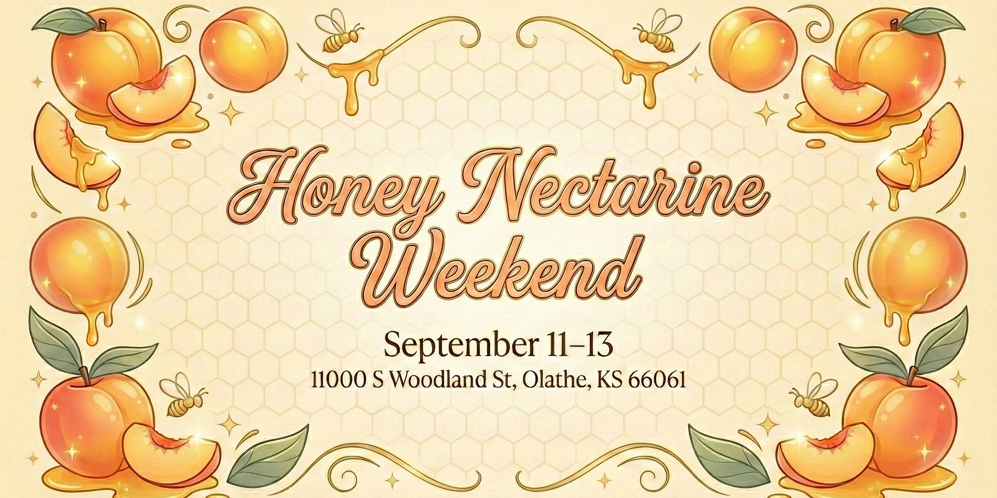 🍑✨ Honey Nectarine Weekend ✨🍯 Sept 11–13 | Hometown Olathe Family Farm 📍 11000 S Woodland St, Olathe, KS 66061 ✨ Free Event Sweet, sunny, and full of bold late-summer energy — Honey Nectarine Weekend is bringing juicy flavor and vibrant excitement to the farm for three full days. Expect themed drinks, fresh bites from our kitchen, fun photo ops, and free events happening all weekend long. Think sun-kissed nectarine vibes, golden honey accents, and a weekend designed to feel bright, refreshing, and a little extra. 💫🍑 Whether you’re grabbing a peachy sip, enjoying something from the kitchen, wandering the farm, or snapping photos, this weekend is all about savoring something special. 🍯✨ ✨ What to expect: Fri, Sept 11 12 PM | Family Scavenger Hunts 2 PM | Free Arts & Crafts 7 PM | Free Poker Night 7 PM | Karaoke Night Sat, Sept 12 4 PM | Bunco Saturdays Sun, Sept 13 1 PM | Pokémon Card Swap 2 PM | Bingo Sundays 🕒 Hours: Mon–Thurs: Closed Friday: 12 PM – 12 AM Saturday: 12 PM – 10 PM Sunday: 11 AM – 6 PM 👉 Full event schedule available at hometownolathefamilyfarms.com 🚨 Vendor Scam Warning Please note: The ONLY official contacts for vendor opportunities are Hometown Olathe Family Farm, TJ Events, and our official email. If you ever have questions about whether a message or comment is legitimate, please reach out directly. All vendor payments are ONLY processed through TJ Events.