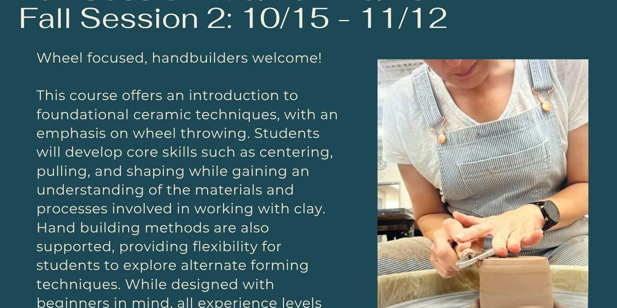 Wheel focused, handbuilders welcome! This course offers an introduction to foundational ceramic techniques, with an emphasis on wheel throwing. Students will develop core skills such as centering, pulling, and shaping while gaining an understanding of the materials and processes involved in working with clay. Hand building methods are also supported, providing flexibility for students to explore alternate forming techniques. While designed with beginners in mind, all experience levels are welcome. A sketchbook or notepad is recommended for note-taking, idea development, and tracking progress throughout the course.