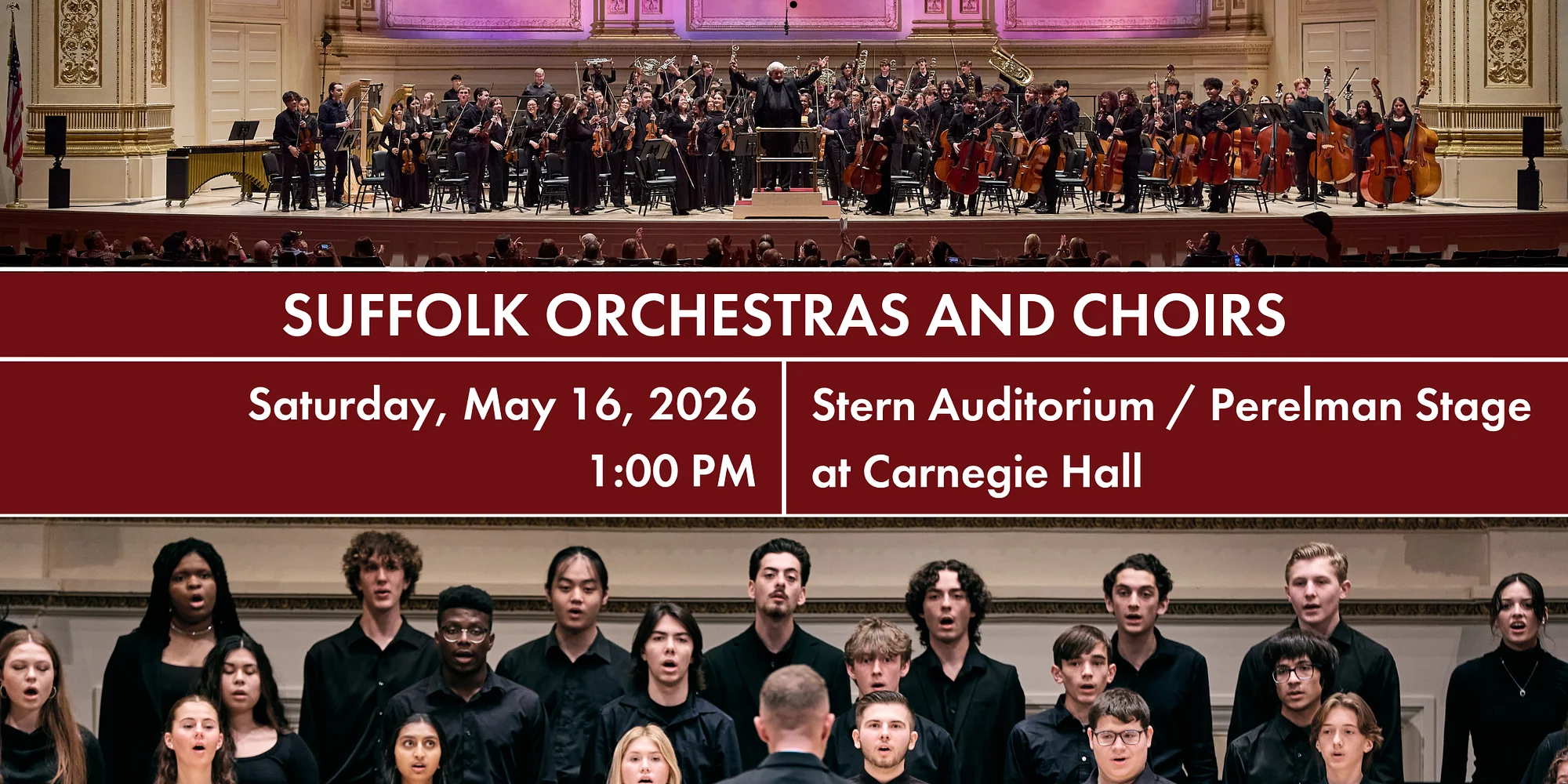 Performing Ensembles: Suffolk Treble Choir: Craig B. Knapp, Music Director | Cara Verity, Pianist Suffolk Senior Treble Choir: Rachel Nagle, Music Director | James Nagle, Pianist Suffolk Symphonic Choir: Brad Drinkwater, Music Director | Joseph Franzino, Pianist Suffolk String Orchestra: Felicya Schwarzman, Music Director Suffolk Symphony Orchestra: Scott Zarchy, Music Director Suffolk Principal Orchestra: Phil Preddice, Music Director