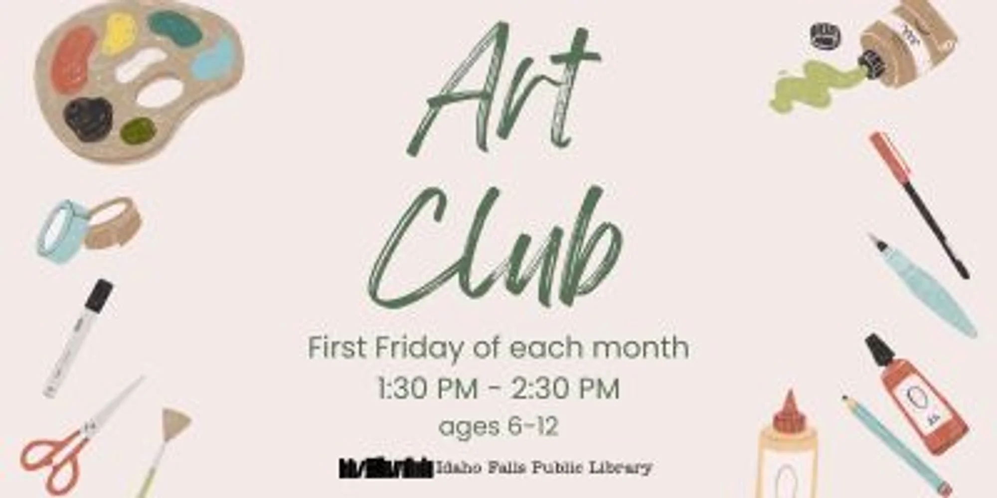 Join the new Art Club at the Idaho Falls Public Library! This program will be held once a month on the 1st Friday from 1:30-2:30 pm For ages 6-12. For more information about this program and others that are hosted by the Idaho Falls Public Library, send us a message or call 208-612-8460.