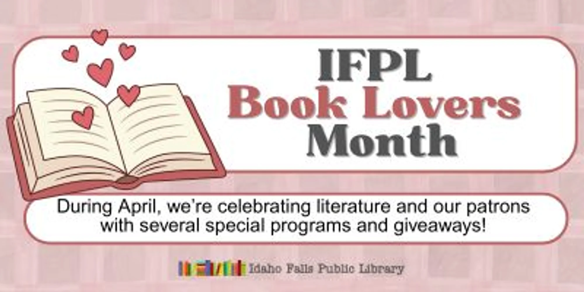 The entire month of April is IFPL Book Lovers Month! We’re celebrating literature and our patrons with several special programs and giveaways! All month, 3rd Floor Desk: Book in a Jar – patrons can guess what book is shredded in a jar at the 3rd Floor Desk. All correct guesses will be entered into a drawing for a small prize package that will include a $10 gift card to a downtown business. All month, 3rd Floor Desk: Patrons can pick out a bookmark or a sticker for checking out items from the 3rd Floor. Limited to once per day. All month, 3rd Floor: National Poetry Month National Library Week, April 19-25 Author visits: April 7 with MJ Candland and April 9 with David Bunnell Book Blitz: April 20 – Take a minute or two and tell a partner about a favorite book! Authorpalooza: April 25 – 10:30am-5pm For more information, send us a message or call 208-612-8460.