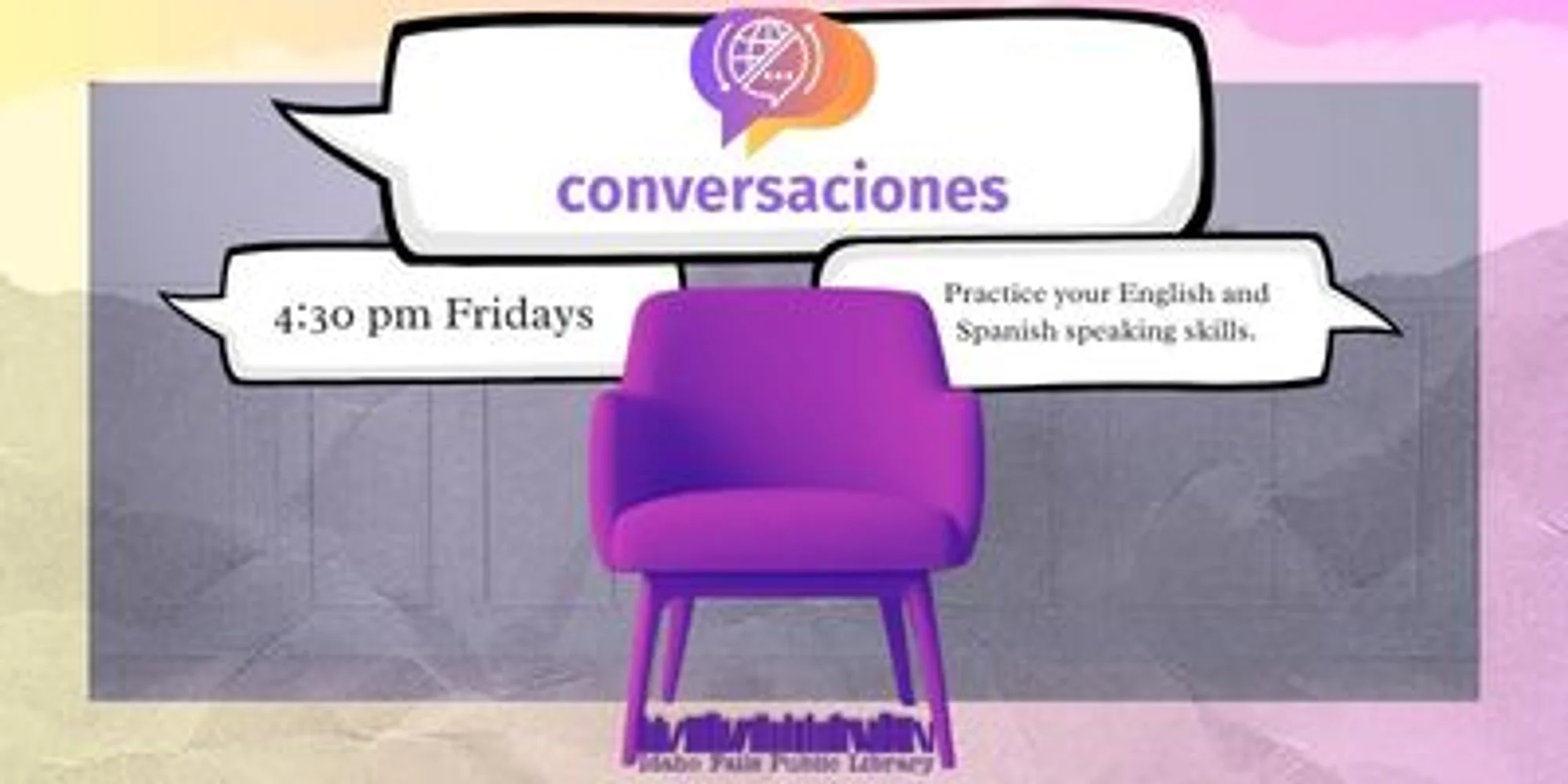 Viernes, 4:30 p.m. sala de programas del segundo piso ¿Quiere mejorar sus habilidades lingüísticas en inglés? Únase a otros en conversaciones en el programa dual de español e inglés. Fridays, 4:30pm 2nd Floor Program Room Want to improve your English language skills? Join others in conversations in this dual Spanish and English program. For more information, send us a message or call 208-612-8460.