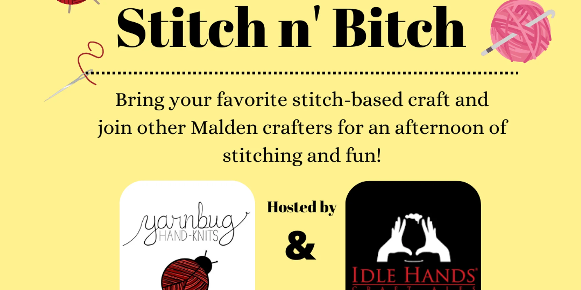 Bring your favorite stitch-based craft and join other local crafters for an afternoon of stitching and fun. Free to attend. Hosted by Yarnbug Handknits.
