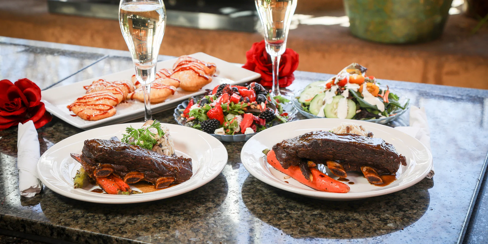 at Join the Indian Pueblo Kitchen for a special Valentine’s Day menu! Our one-day-only menu includes bison short rib, wild mushroom risotto, and roasted carrots with two harvest side salads and a plate of heart shaped mini fry bread drizzled with our homemade red chile raspberry sauce. Don’t miss this Valentine’s Day meal with a New Mexican twist!