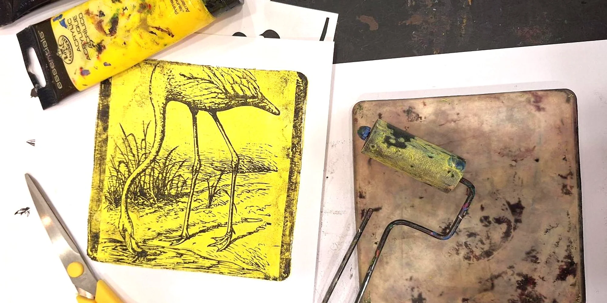 Gel Plate Monoprints Saturday, March 14, 2026 2:00 p.m. – 4:00 p.m. Price: $25 | $20 IMAS Members Discover the art of gel plate printmaking as you print a one of a kind monoprint. Experiment with objects, plants, and magazine photo transfers as you create colorful abstractions utilizing negative and positive space. Museum admission included with workshop registration. Advanced registration is encouraged due to limited capacity.