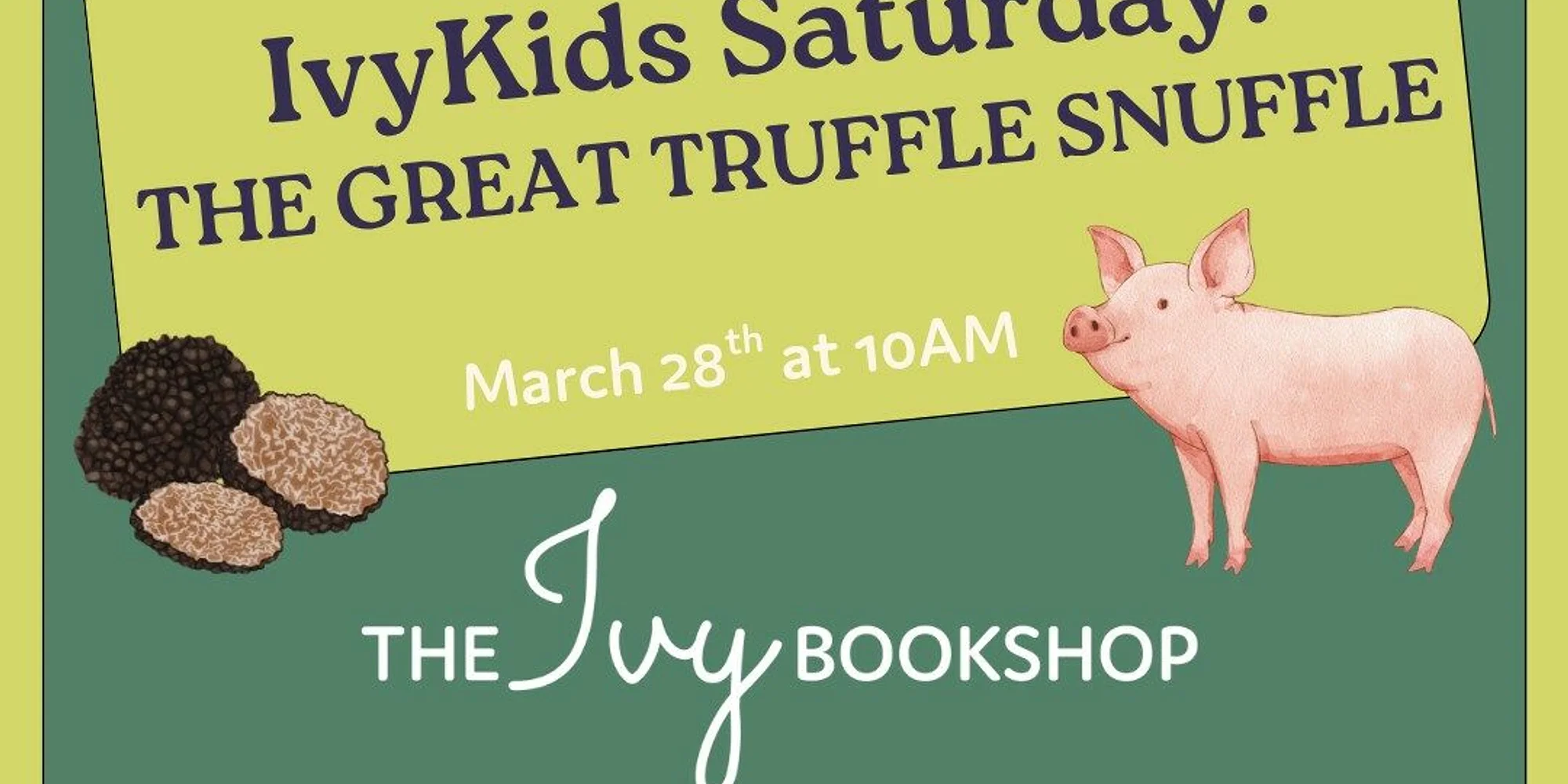 In Lindsay Cordero’s picture book The Great Truffle Snuffle, Peri (a pig) and Tubs (a dog) are best friends who live at an orchard where magnificent truffles grow. They spend their days sniffing and (very gently!) digging in the rich soil. And now… you can join them! Come on down to the Ivy with the kids to try a truffle dig activity for yourself. Then, follow real live truffle dogs from Virginia Truffles to a truffle digging demo in the gardens behind the bookshop! RSVP here! Order THE GREAT TRUFFLE SNUFFLE here! Lindsay “Bones” Cordero is a picture book author, illustrator, U.S. Air Force veteran and adventurer at heart. She uses humor and unexpected twists to introduce young readers to the fascinating world around them. When she’s not crafting fun, absurd stories, she’s likely scuba diving, making art underwater, or getting lost on a side quest—like truffle hunting. She’s passionate about marine life, her persnickety cat, and sparking curiosity about the natural world. Find her at lindsaycordero.com or on Instagram @artebybones. Virginia Truffles is a family-owned farm in Rixeyville, Virginia, dedicated to cultivating Black Périgord truffles (Tuber melanosporum) and sharing their magic with the public. Blending science, heritage, and storytelling, we invite guests to join us and our skilled truffle dogs for immersive hunts and educational experiences that celebrate the art of truffle cultivation in the U.S. Learn more at virginiatruffles.com and follow us on Instagram @virginia_truffles.