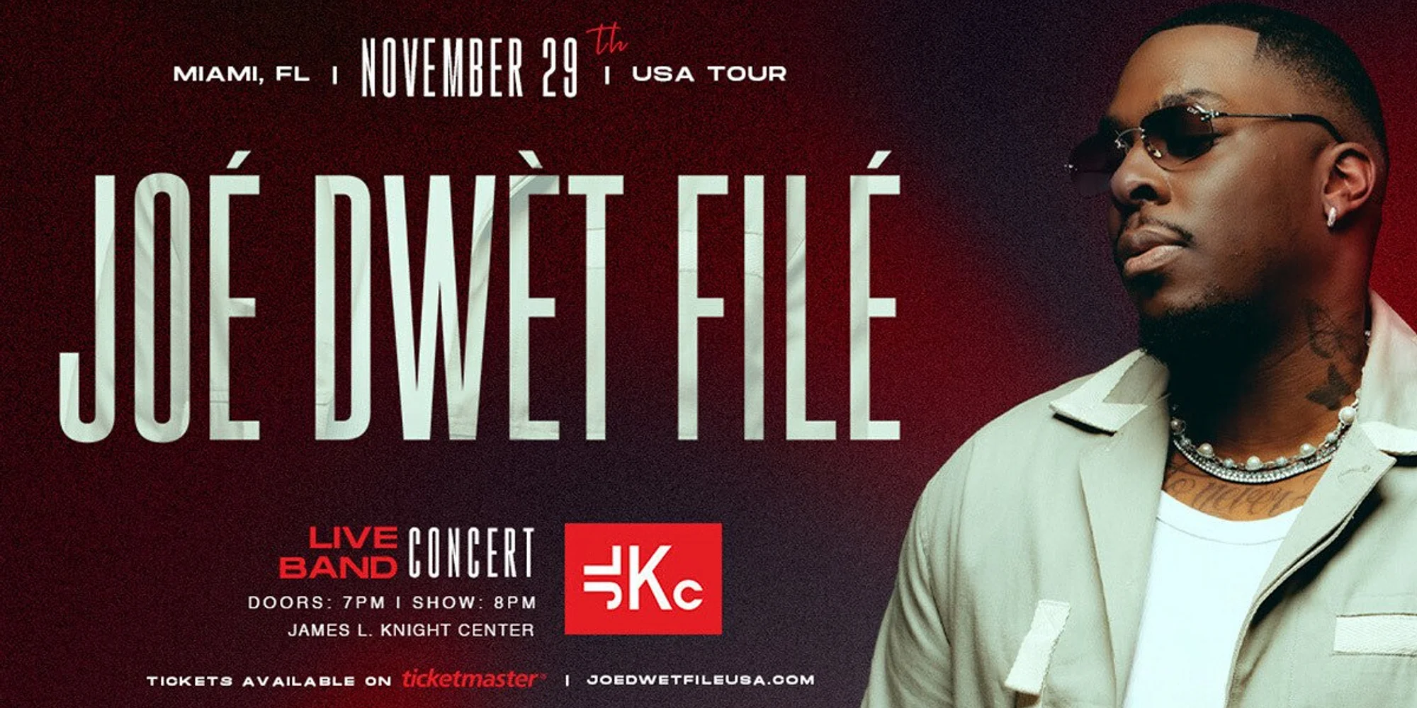 Experience the vibrant performance of Joe Dwet Filé as he takes the stage for an unforgettable night of Afro-Caribbean rhythms and soulful melodies. Known for his chart-topping hits like “4 Kampé”, “Bezwen Ou”, “Baddies”, and “Fem Voyé”, Joe brings his lively performance to Miami, promising an evening filled with passion, rhythm, and unforgettable music.