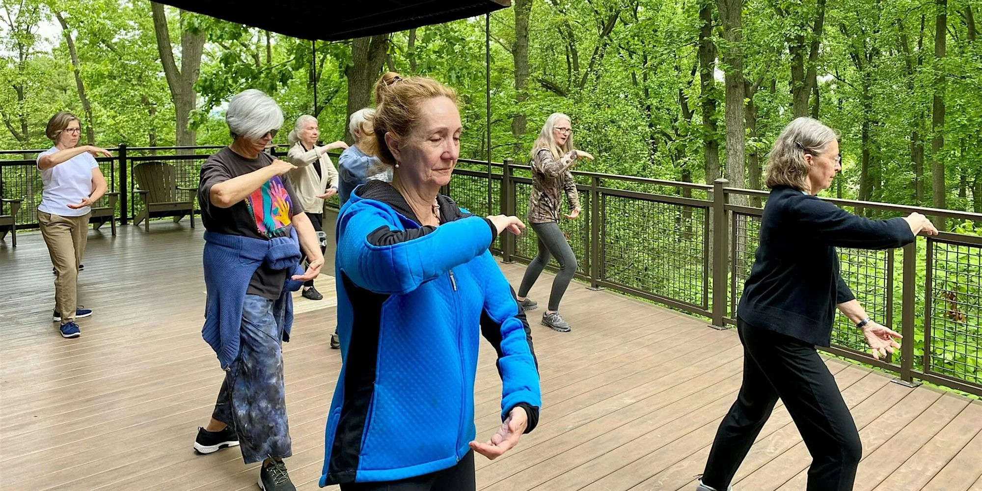 Join us for a 5-week outdoor Tai Chi series WEDNESDAYS SERIES Tai Chi 9:30–10:30 AM 5-week series: 4/8–5/6, 5/20–6/17 Aimée Alegría Barry, Centaur Tai Chi Tai Chi, a series of postures done slowly, promotes balance, flexibility, and strength. Learn the Tai Chi form, as well as the yin and yang principles that underlie this martial art. Tai Chi is known as a soft martial art because it emphasizes a calm mind and relaxed body. The beauty of Jenkins will create a peaceful backdrop for your practice. All levels welcome. Classes will be held outdoors with an indoor option for inclement weather. Members: $60/5-week series | Non-Members: $85/5-week series