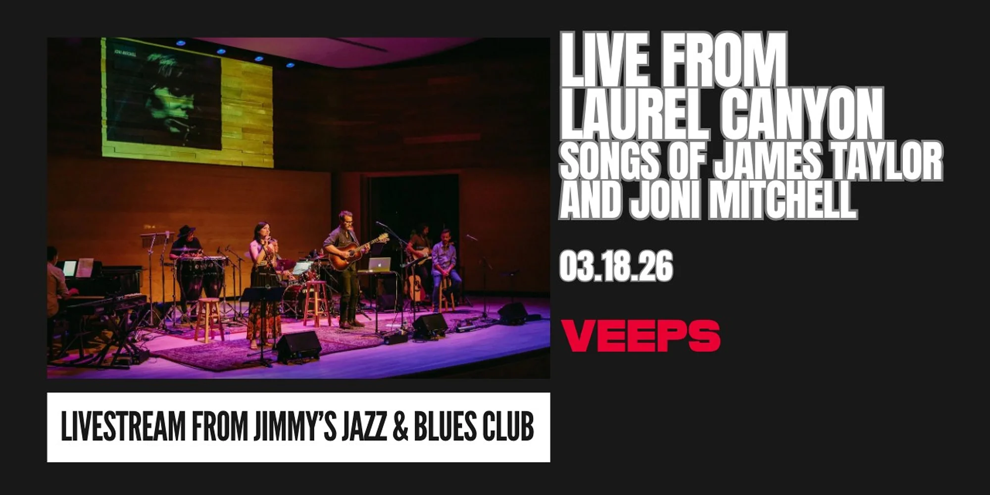 Live From Laurel Canyon Presents: James & Joni: Their Stories, Their Songs is a 90-minute show that chronicles the careers of two songwriting icons: James Taylor and Joni Mitchell, presented with narrated stories about their lives and the songs you know and love. The show features some of the finest singers and most well-versed musicians in the country interpreting a selection of songs from their vast careers; from the early days to their later hits. Featuring show creator Brian Chartrand (vocals/guitar), with Josh Taylor (vocals/guitar), Holly Pyle (vocals), Lamar Gaines (keys), Mario Mendivil (bass), Adam Armijo (electric guitar), Todd Chuba (drums), and Miguel Melgoza (percussion).