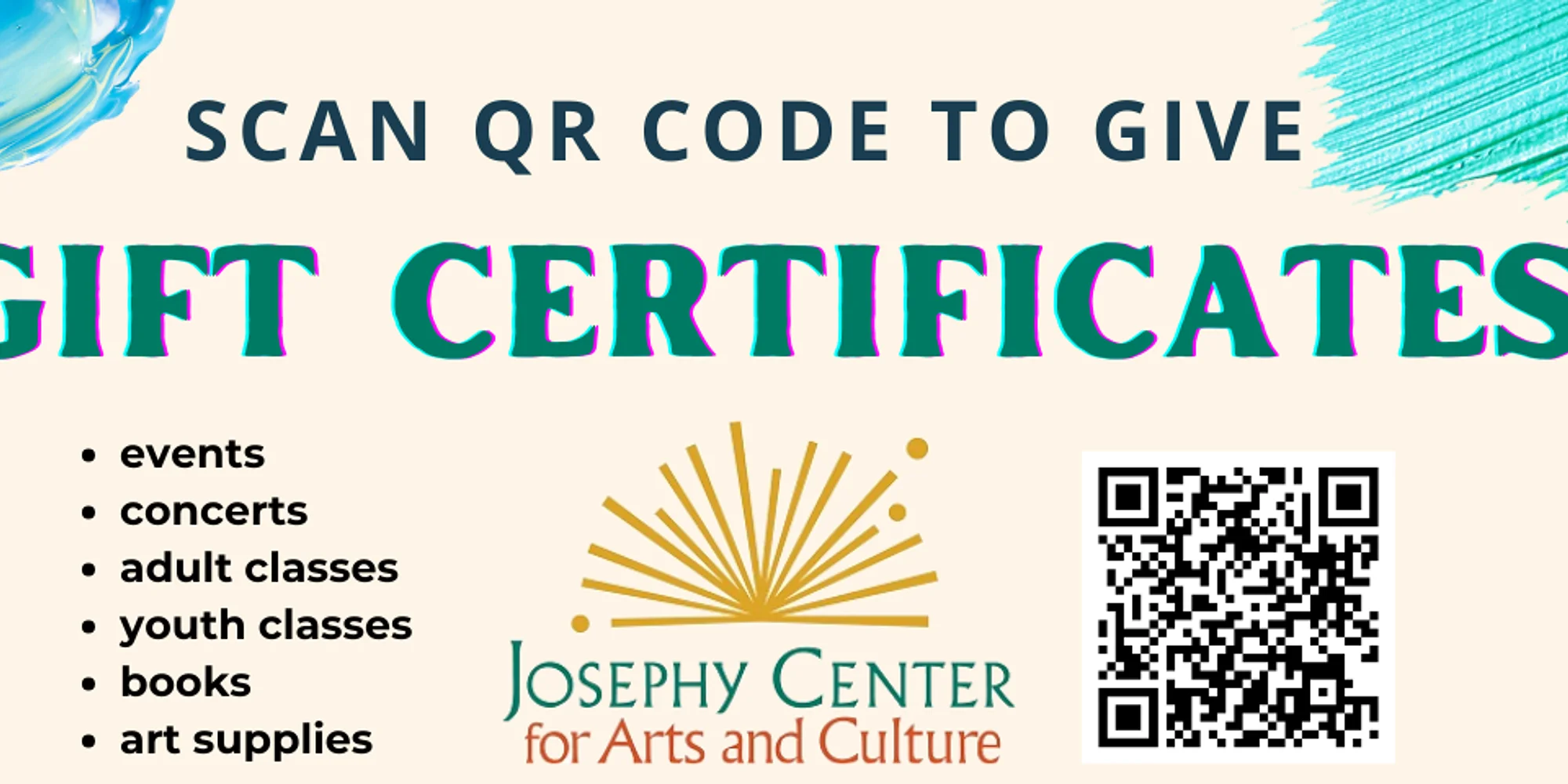 🎁 Give the Perfect Present This Holiday Season! 🎁 Looking for a thoughtful gift? Our gift certificates are a great way to surprise and delight anyone on your list. ✨Click HERE to purchase ✨ Ideal for: Stocking stuffers Birthdays Special events Concerts Adult and youth classes Books and art supplies Unique finds at our gift shop Make holiday gifting simple and meaningful. Treat your loved ones to something they’ll love! 🎨📚🛍️