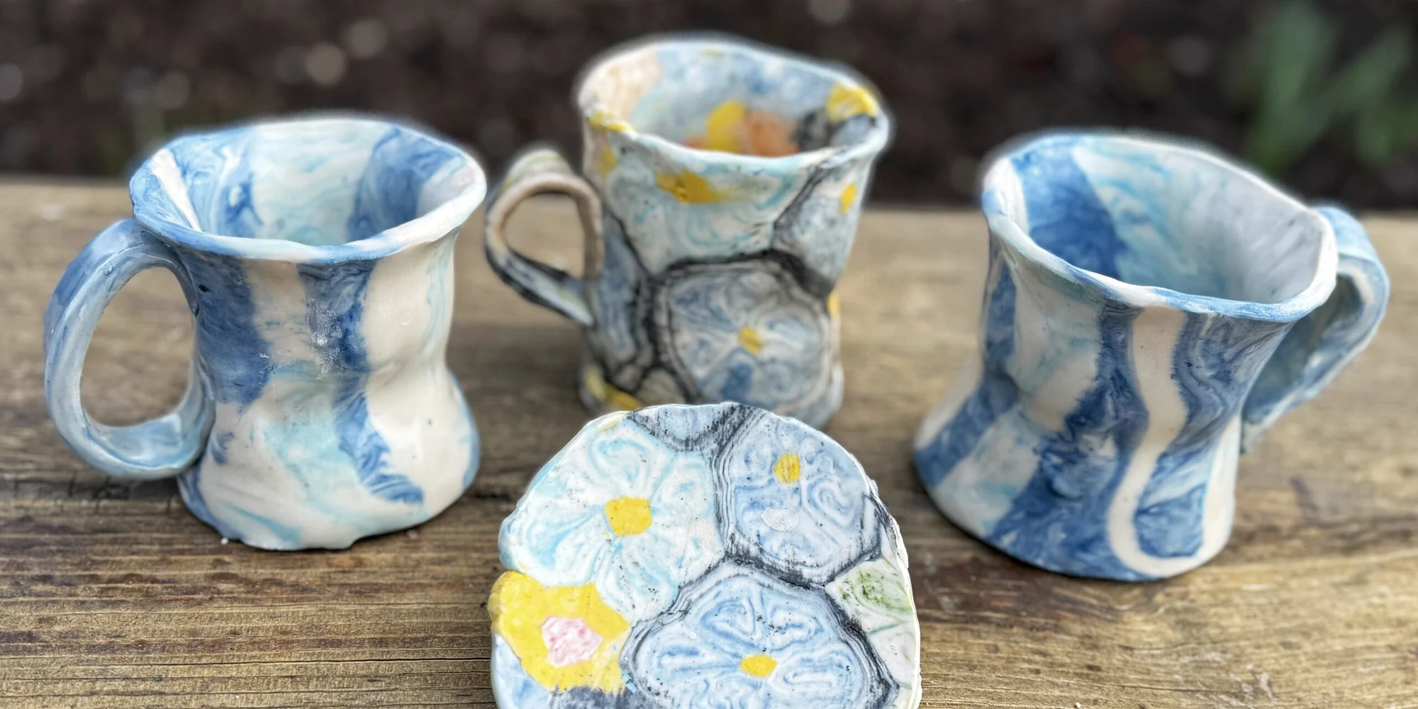 Nerikomi Ceramics Workshop with Cheryl North Coughlan Saturday, May 16 | 10:00 AM – 2:00 PM (Optional Finishing): Saturday, May 30 | 10:00 AM – 12:00 PM Cost: $95 Nerikomi is a traditional Japanese ceramic technique that involves stacking, layering, and folding different colored clays to create intricate patterns that run throughout the entire piece. This meticulous hand-building method—also known as neriage—requires patience and care, with processes similar to creating glass canes that are sliced, arranged, and compressed into one-of-a-kind works. In this intimate workshop, students will work with pre-colored porcelain clay to explore this meditative technique firsthand. During the first session, students will be introduced to the history, styles, and possibilities of Nerikomi before selecting a project, developing a design, and beginning the layering process. A lunch break is built into the class time. The optional second session offers the opportunity to finish your piece by applying a clear glaze (making it food-safe) or by wet-sanding and waxing for a smooth, matte surface—bringing your work fully to life. Supplies Provided: All materials, including pre-colored porcelain clay, tools, and firing, are included. Adult and youth over 16 Experience Level: Some ceramics experience is helpful, but beginners are warmly welcome Class Size: Maximum 7 students Instructor Bio: Cheryl North Coughlan is an abstract & ceramic artist and instructor known for her approachable teaching style, whimsical creations and welcoming studio environment. She enjoys helping students explore clay through both functional and creative forms.