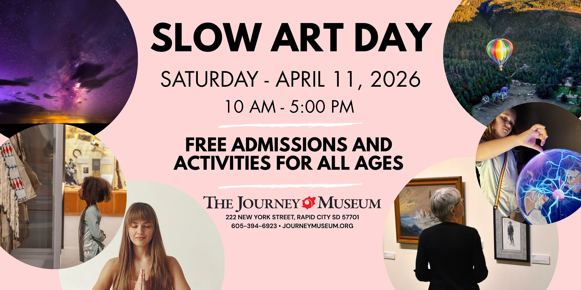 Slow Art Day is April 11, 2026, and the Journey Museum invites museum goers for a day of special programming as one of the 100+ global host venues. Events and special programs will take place from 11:00 AM - 4:30 PM and admission is FREE during regular hours from 10:00 AM - 5:00 PM. Why slow? Most visitors typically engage with a piece of artwork for less than thirty seconds while visiting a museum. By slowing down, more personal connections can be made with a work of art, and it can encourage better conversations surrounding the work. When people look slowly they make discoveries, unlock curiosity and creativity. Since its inception in 2010, Slow Art Day has encouraged museum and gallery visitors to engage with just a few artworks at a deliberate pace. To celebrate this year’s event, the Journey Museum is providing a full day of hosted events, with each activity supporting Slow Art Day’s mission: help more people discover for themselves the joy of looking at and loving art. Our goal is to further extend the experience of Slow-Looking on to more than just fine art, but physical artifacts representing the people of the past and their stories and lived experiences. Come early and stay for the day; Old School Sliders will be on site serving up their famous flavors from 11:00 AM - 2:00 PM. This is a FREE community event thanks to our sponsors Improvise Arts. Slow Art Day Schedule 11:00 AM - Slow Flow Yoga (Adelstein Gallery) Offered by Jillian Anawaty with Vibrant Life & Wellbeing. This unique 1-hour experience includes both a slow flow yoga practice and a focused-attention exercise using a work of art. The goal of this program is to connect art and body through guided mindfulness practice, and beautifully embody the spirit of Slow Art Day. Slow Flow Yoga is accessible to all ages. Limited chairs are available for seated stretching. Please arrive on time to avoid disruption to others. Participants can expect a guided yoga flow & stretching followed by a slow-looking exercise with a chosen work of art. The session will close with an opportunity for participants to share their reflection with the group if they choose. Space is limited, so be sure to RSVP today. 11:00 AM - 1:00 PM - A Slow-Looking Journey (Museum Gallery Spaces) Join us for a special Slow-Looking Journey and discover new ways of seeing selected works and artifacts from the Journey’s permanent collection. Build your observation skills by lingering and allowing focus in four specific areas of the museum as facilitated by our docents, make choices about where and how you want your awareness and attention to pause, and share your reflections with the group. Take the tour on your own or make it a group excursion. Materials for a Self-Guided Slow-Looking Journey are also available with prompts for sketching, writing, and discussion to encourage personal exploration at your own pace. 12:30 PM - Sound Bath and Breathwork (Journey Theater) A sound bath is a deeply im...