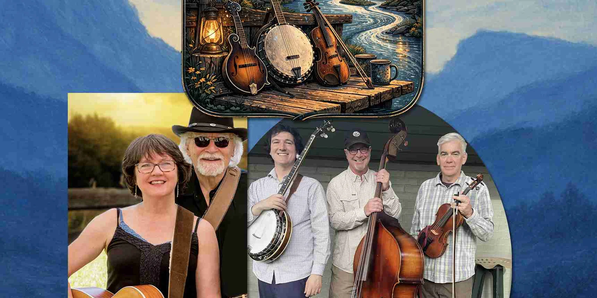 South Fork of the River (a spin-off of Blue River Band) is a bluegrass group made up of seasoned performers: husband-and-wife duo Andree and Austin Hurst, along with Scott Cook, Dave Cannon, and Scott Lindorfer. Their tight harmonies and warm acoustic sound—featuring guitars, mandolin, banjo, standup bass, and fiddle—bring depth and authenticity to both traditional and original songs. Every member of the band is a multi-instrumentalist, adding richness and variety to their performances. NEVER a COVER CHARGE!