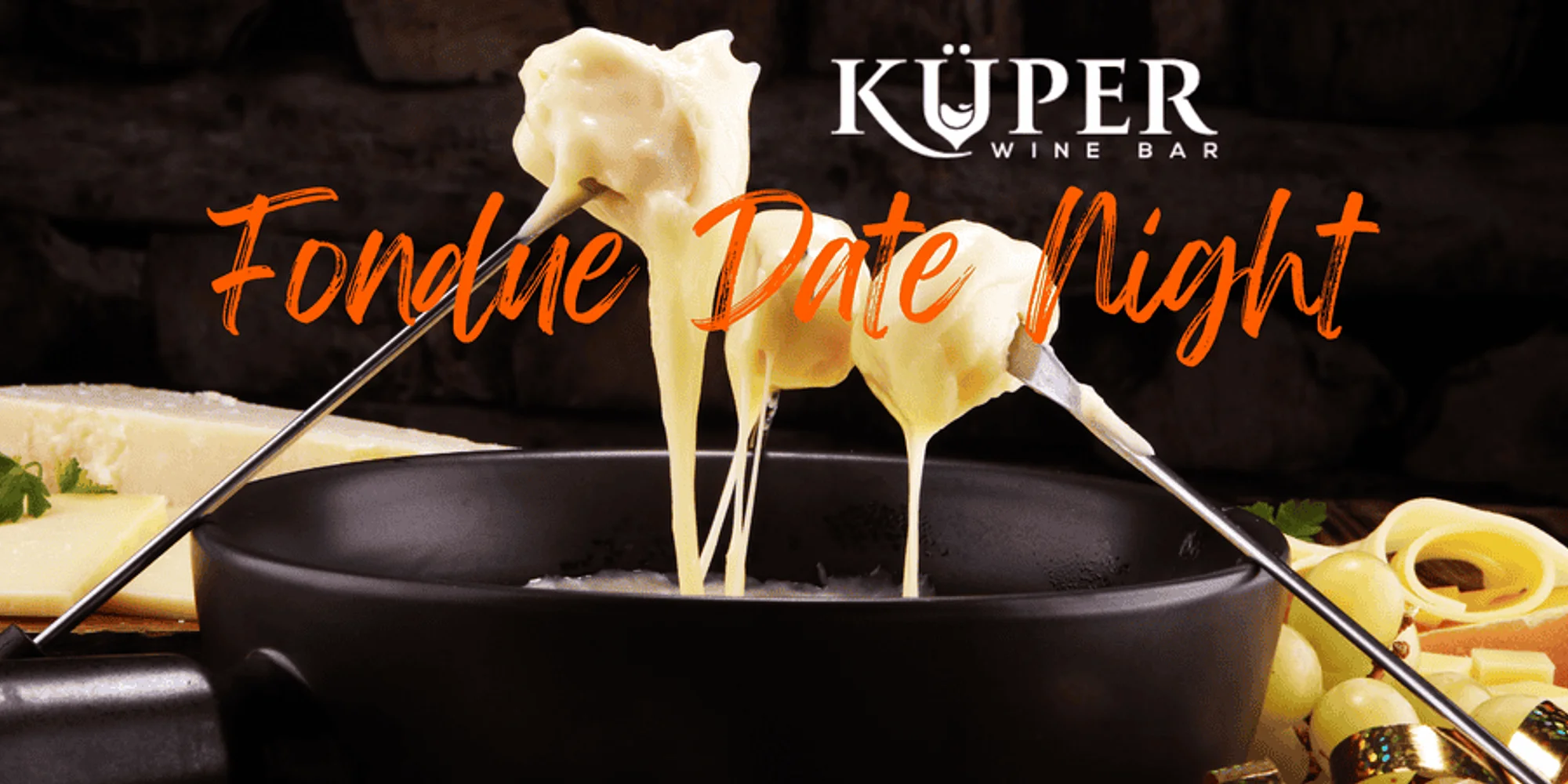 Date Night at The Kuper is here! Spend your Wednesdays with us for date night and enjoy a cheese fondue platter with a pre-selected bottle of wine for $75. The selection of wine will include a red, white or sparkling and will vary from week to week. You have the option to upgrade to your favorite bottle for an additional fee. The cheese fondue platter will have all the yummy nibbles needed to dip in a warm, gooey traditional cheese fondue. $75 is for 2 people – includes Fondue platter & bottle of wine Seating time is 5:30 only with a 90 minute limit. CLICK HERE FOR TICKETS
