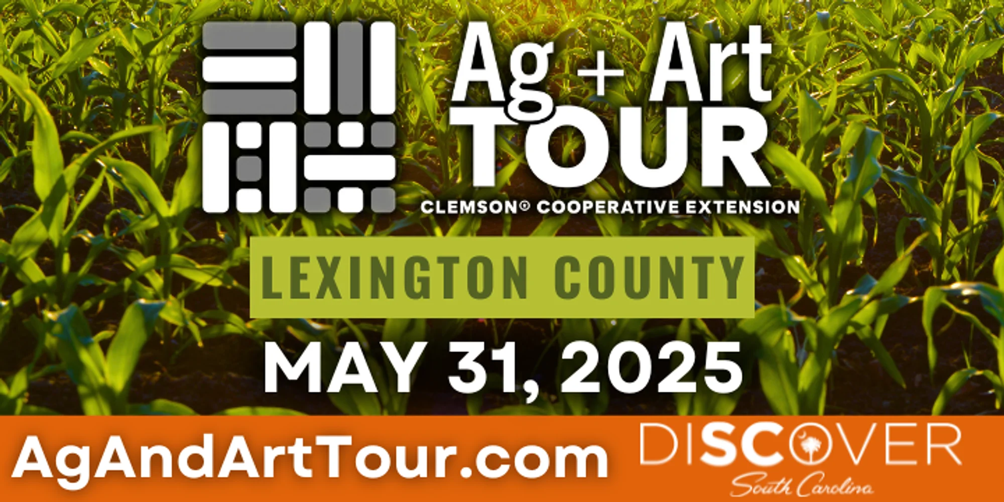 May 30, 2026 The South Carolina Ag + Art Tour is a FREE, self-guided tour of farms and markets featuring local artisans at every stop! During the tour, visitors have the opportunity to see first-hand where their food comes from, watch artists in action and purchase their works, enjoy the melodies of local musicians, and learn more about rural life. The South Carolina Ag + Art Tour is the largest free farm and art tour in the nation, with over 150,000 visitors since the tour’s inception in 2012. The South Carolina Ag + Art Tour is a proud member of the South Carolina Agritourism Association. Tour Sites and Artisans More info coming soon! View tour site details including address and hours of operation here About Lexington County: With a rich historical background and promises of a strong future, Lexington County provides a diverse community, endless economic opportunities, and prosperous growth. Located in the Midlands of South Carolina, Lexington County is known as one of the fastest-growing areas in the state and region. As a leader in business and industry, Lexington County provides an outstanding quality of life with a reasonable cost of living. Featuring a temperate climate, convenient location, and access to Lake Murray, Lexington County offers exceptional recreational and residential opportunities. Learn more about the Lake Murray Country Ag + Art Tours of Richland and Newberry Counties
