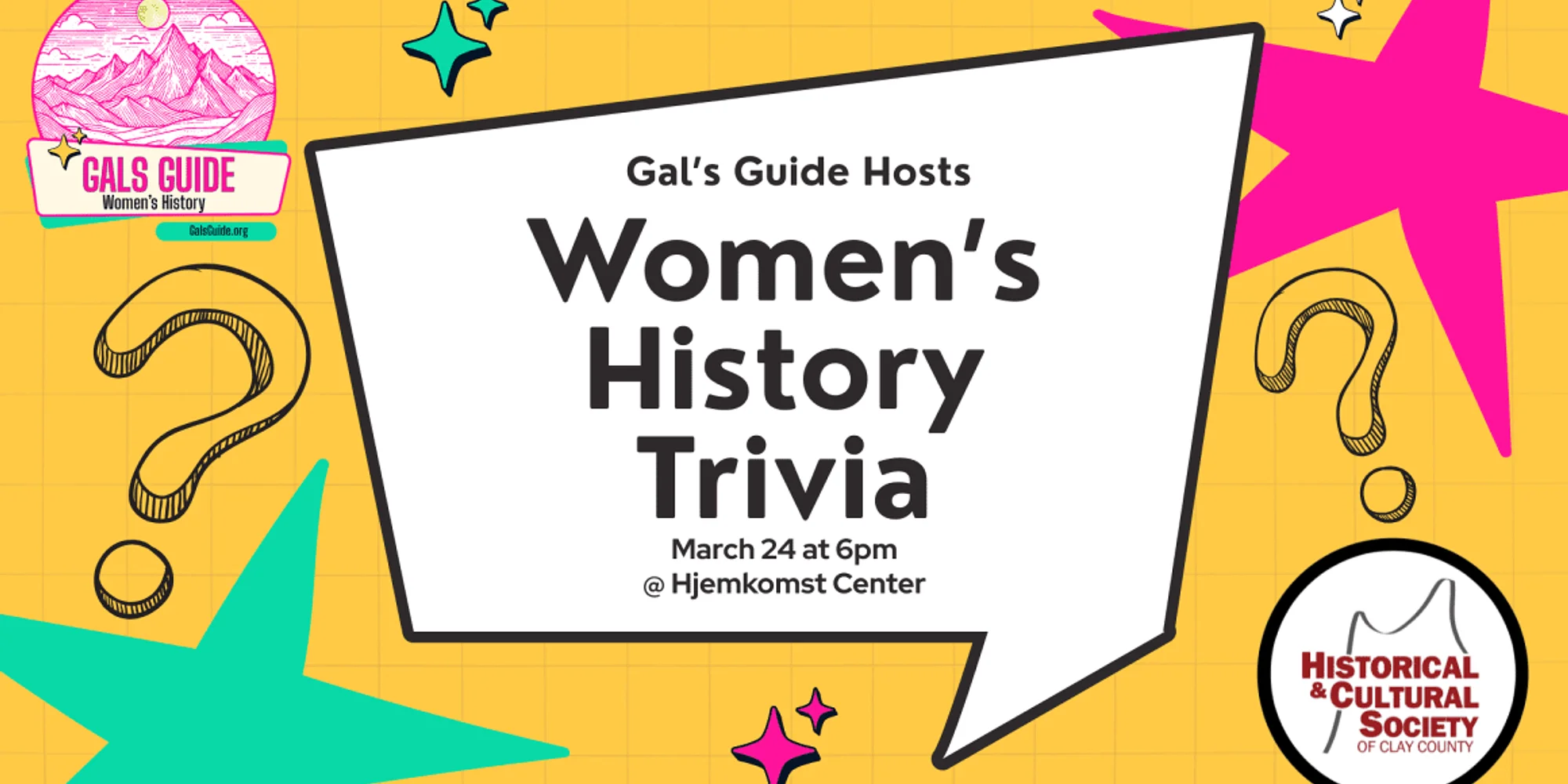 EVENT LINK: https://galsguide.org/2026/02/02/womens-history-trivia-at-hcscc/ FEE: Free Women’s History Trivia Night! Presented by Leah Leach, founder of Gal’s Guide Tuesday, March 24, 2026 6pm – 7pm Part of FREE Tuesday nights (5pm-8pm) Celebrate Women’s History Month with a fun trivia! Plus, there are prizes!! How well do you know women of STEM? How about female filmmaking pioneers? How about women from all over the world? What about local gals? Gal’s Guide Library founder Leah Leach will host this interactive trivia night at the Hjemkomst Center. Bring your mobile device (smartphone or tablet) to play the game for a chance to win prizes. You’ll have so much fun you’ll forget you’re learning about history! Open to all ages but designed for teens and adults. Hjemkomst Center 202 1st Ave N Moorhead, MN 56560