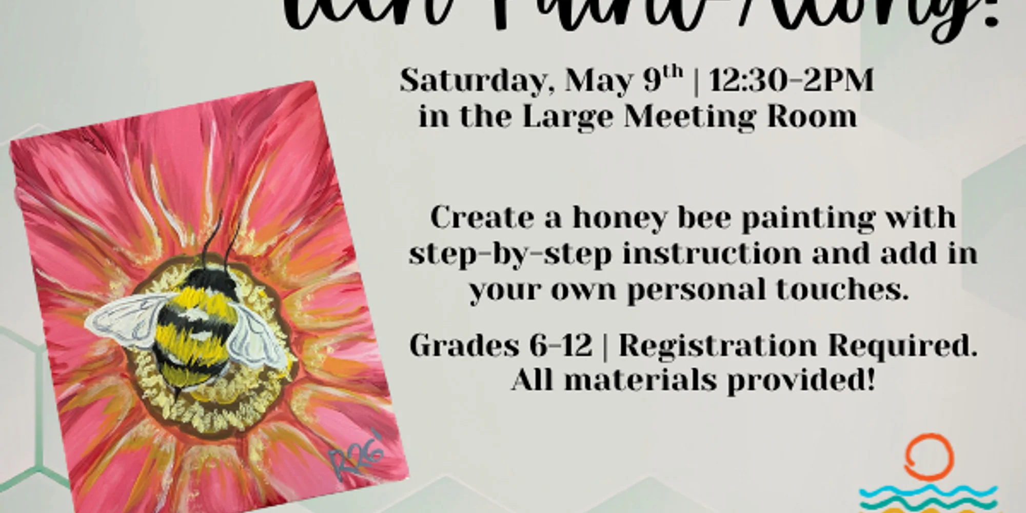 Learn more FEE: Free | Registration required Teen Paint-Along Saturday, May 9, 2026 | 12:30–2:00 PM Douglas County Library 720 Fillmore St., Alexandria, MN 56308 Create a honey bee painting with step-by-step instruction, with time to add your own personal touches. Open to students in grades 6–12. All materials provided.