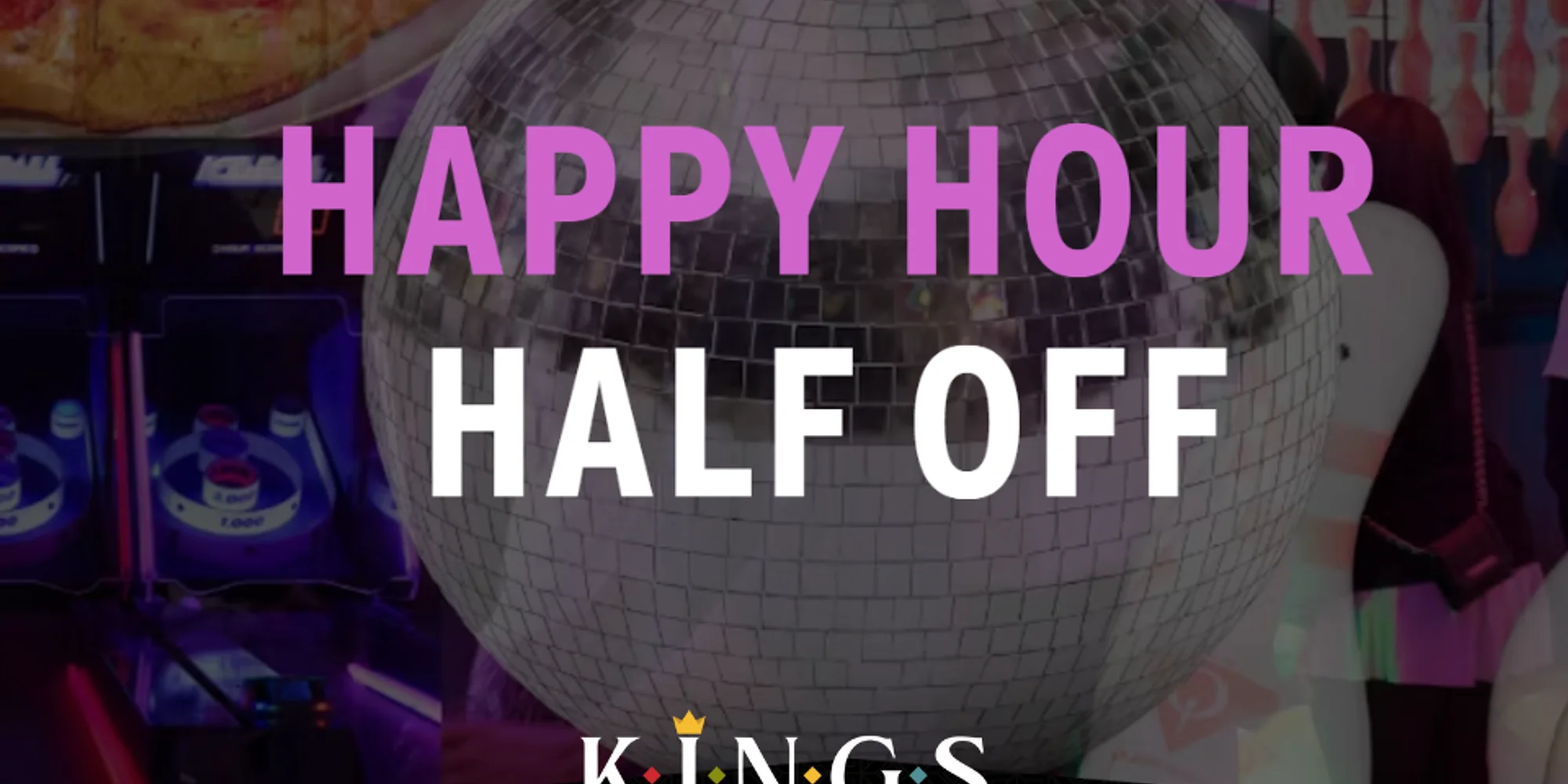 Monday through Friday, 4–6PM, it’s half off the good stuff at Kings. Enjoy bowling lanes, billiard tables, arcade games, and pizza. Clock out, level up, and make your weekday feel way less… weekday.