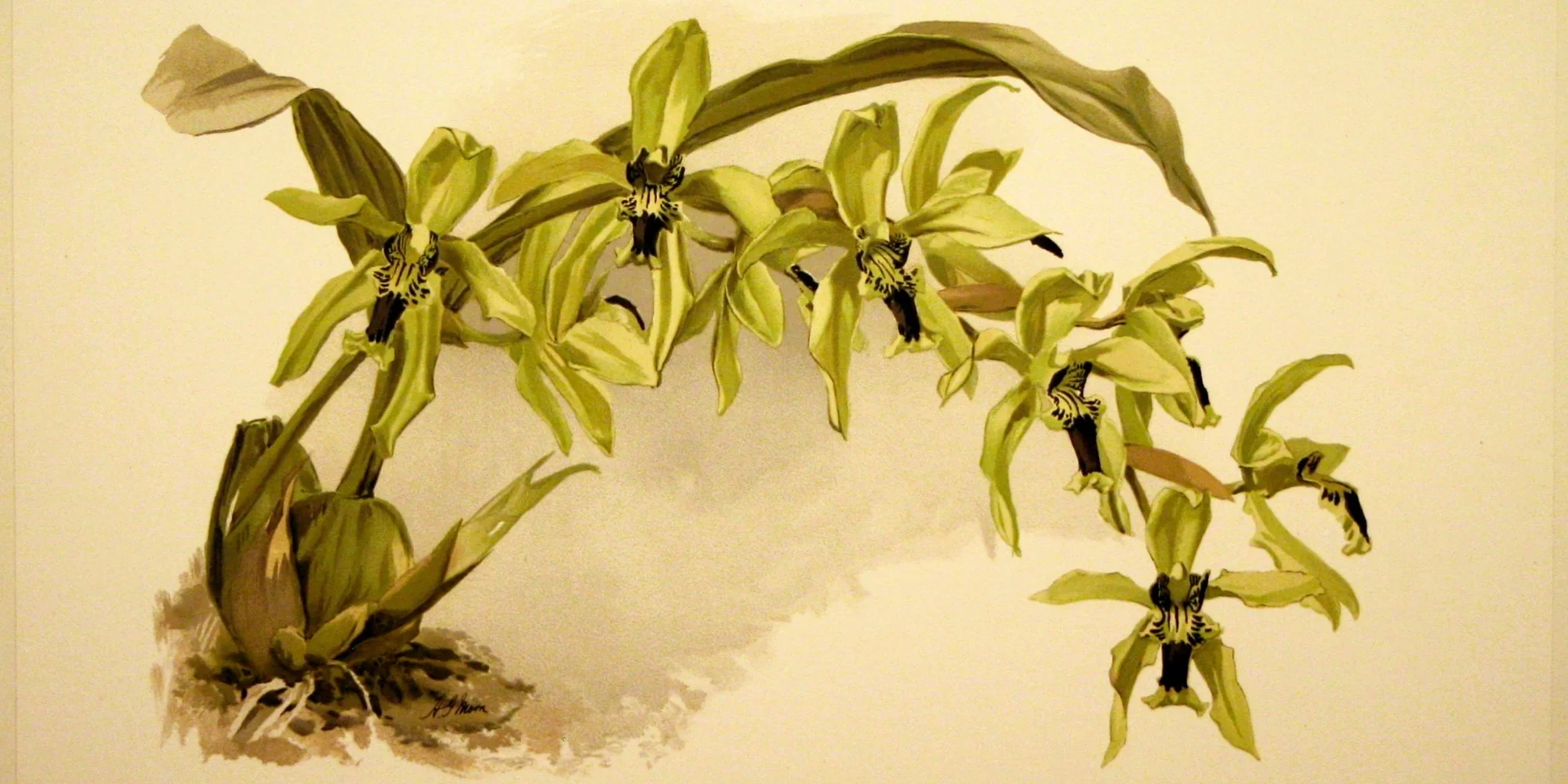 The Reichenbachia is a late 19th century collection of orchid prints produced by Frederick Sander, also known as the “Orchid King”. Sander sent orchid hunters around the globe to bring back “new” orchids to market in his greenhouses in London, Belgium, and the US – fueling a Victorian-era orchid mania. Each of the 192 orchid prints in this collection is accompanied by a scientific description written by German botanist Heinrich Gustav Reichenbach, for whom the project was named. The text also describes the original habitat where each orchid was found and provides practical advice on keeping them. The Garden’s collection was generously donated by Dr. Arthur Burke (1927 – 2025) and belongs to a larger, limited edition set of 100 “Imperial Editions”. The printing method is called chromolithography, in which each color of an original watercolor painting was recreated on separate printing blocks, then combined to form the images you see on each print. Please enjoy a glimpse at this fantastic collection of orchid art, science, and history in the Library Gallery. For further information or to view the entire collection, please follow the link below for our digital Reichenbachia exhibit and gallery. DIGITAL REICHENBACHIA EXHIBIT AND GALLERY