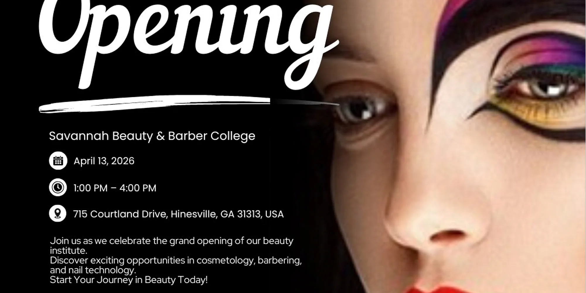 Join us in celebrating the Savannah Beauty & Barber at their Grand Opening! Start your journey in cosmetology, barbering, and nail technology! See flyer for more details.