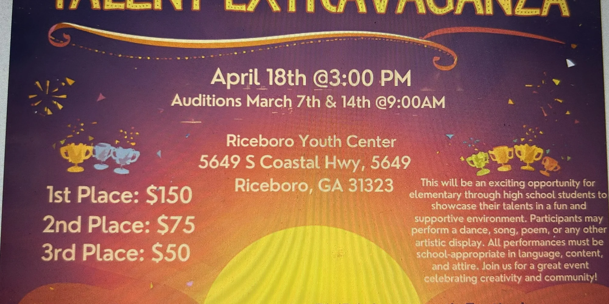 Please join the Progressive Missionary Baptists Association for their Talent Extravaganza talent competition! Auditions: March 7th and March 14th at 9am Show: April 18th at 3pm See flyer for more details.