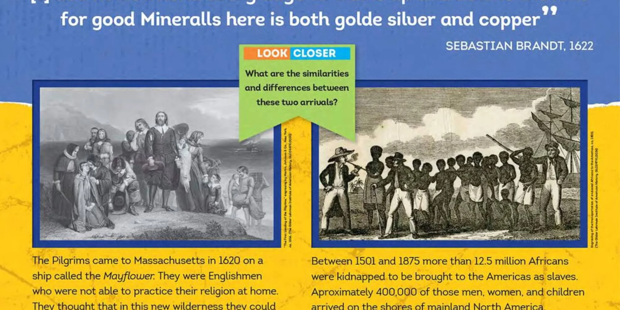 Colonial America to Reconstruction June 2–26 John Edward Smith Gallery (Kemin Cultivation Center) Included with General Admission Introduce upper elementary-age students to the beginnings of American history and the skills involved in primary source analysis. Explore individuals, groups, and documents that have contributed to who we are as a country, and encourage students to think critically about the firsthand accounts of this era. On loan from The Gilder Lehrman Institute of American History