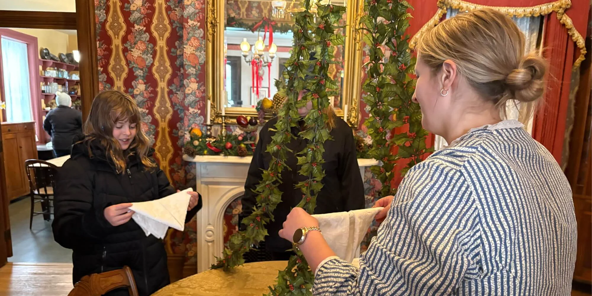 Join us for old-fashioned holiday fun! Saturday, December 5 • Noon-3 p.m. Advance: $12 • $11 members • Under 2 free At the door: $13 • $12 members • Under 2 free Hear the sounds, see the sights, and smell the smells of a 19th-century Christmas: Crafts Carols Stories Cookie decorating Parlor games Visits to the historic Flynn Mansion, Print Shop, Drug Store, Church of the Land, Implement Dealer, and Tangen Home Jingle bell toss and “snowball” fight in the Flynn Barn Horse-drawn wagon rides* And take your photo with Santa! Buildings are heated. Bundle up for wagon rides! *Weather permitting