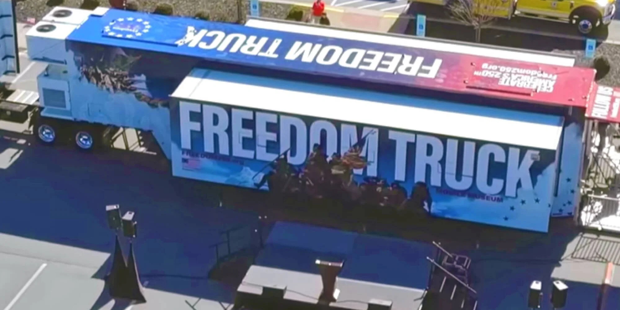Come see the mobile museum traveling the country for America 250 May 12–22 FREE! Learn how 13 colonies declared and won independence from Britain. Take a quiz—“Are you a loyalist or a patriot?” Sign your name to a digital Declaration of Independence. View a wall of 50 American heroes. And more! Freedom Truck Mobile Museums were created in partnership with PragerU and Hillsdale College and made possible by The Institute of Museum and Library Services.