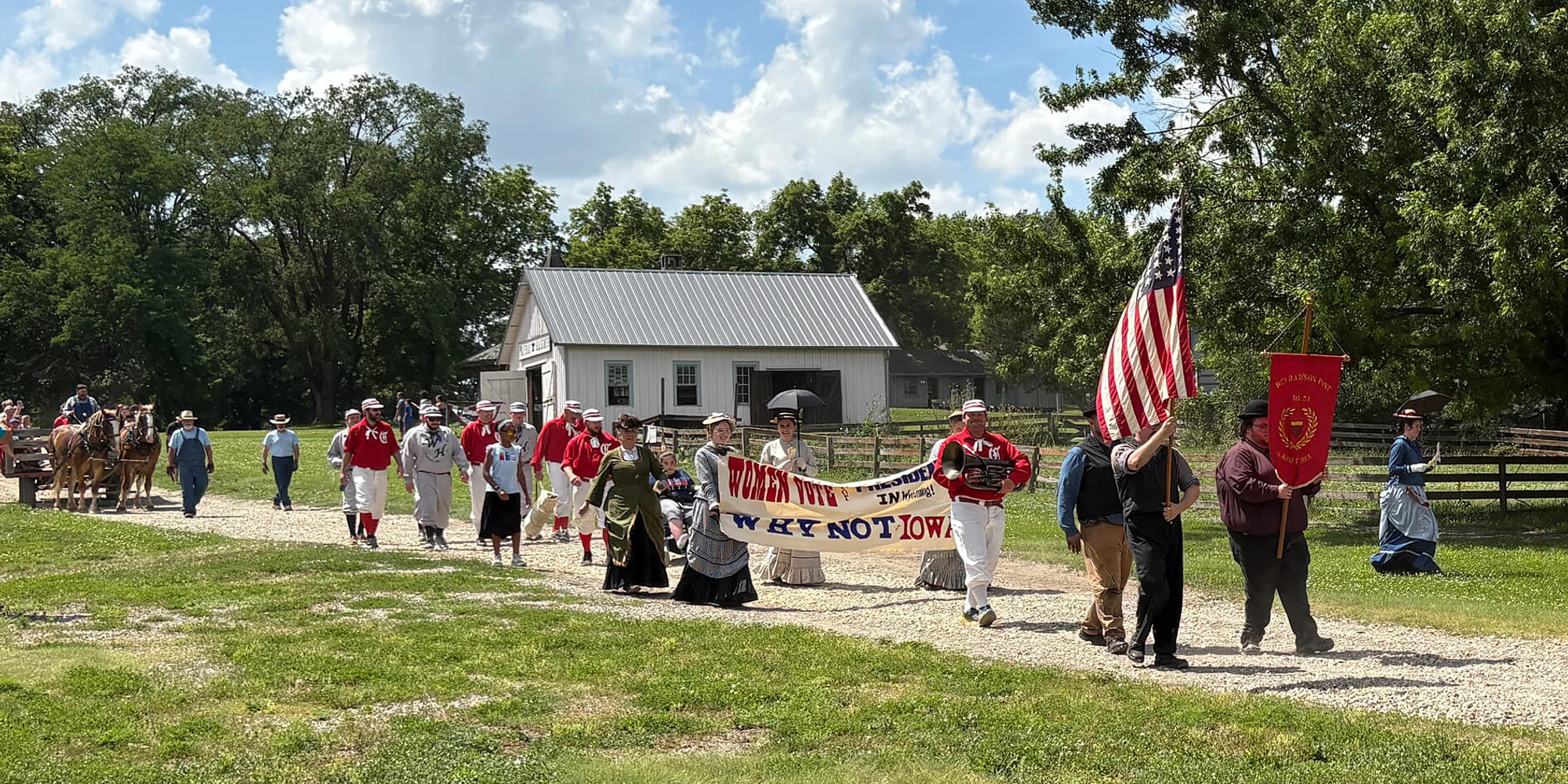 Celebrate July 4th the old-fashioned way! Saturday, July 4 • 9 a.m.-4 p.m. All activities included with General Admission Celebrate a historic Independence Day in the town of Walnut Hill. 1876 marks the first centennial of the United States, and Living History Farms’ Independence Day activities truly show what this day meant to those in the 19th century—a day of family fun and games. Join us for games, crafts, a parade, and more! Historic Baseball & America’s Potluck Starting at 3:30 p.m. • FREE Bring a picnic and a blanket or chair for the most American of pastimes! We play by 1876 rules, wearing period uniforms. After the game, try your own turn at bat.