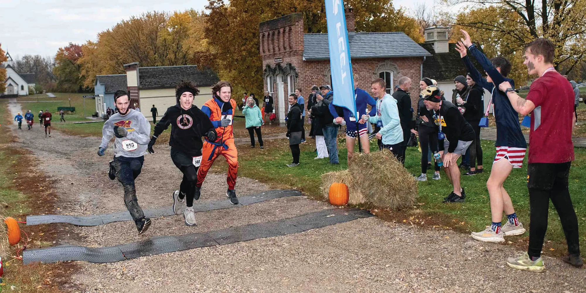 Run 5 miles through 300 years of history! Saturday, November 7, 9 a.m. Registration opens August 1 Immerse yourself in rural Iowa landscapes for this one-of-a-kind off-road race. You’ll splash through streams, plow through fields, and enjoy post-race treats from the Machine Shed. The course starts and ends in the 1876 town of Walnut Hill and runs through our three historic farm sites. Be sure to wave to the horses, cows, sheep, and pigs! Awards given for top male and female overall, top male and female in each age division, and best individual, group, and patriotic/semiquincentennial costumes. Must be 14 to register. Age divisions: 14-19 20-29 30-39 40-49 50-59 60-69 70-79 80+ All finishers receive a shirt celebrating America 250 and a cowbell medal. Costume contest categories: Best individual Best group Best patriotic/U.S. semiquincentennial Any participants who have not reached the halfway point in 1 hour may be asked to hop on the “sag wagon.” + FREE KIDS’ RUN Saturday, November 7 • 10:30 a.m.