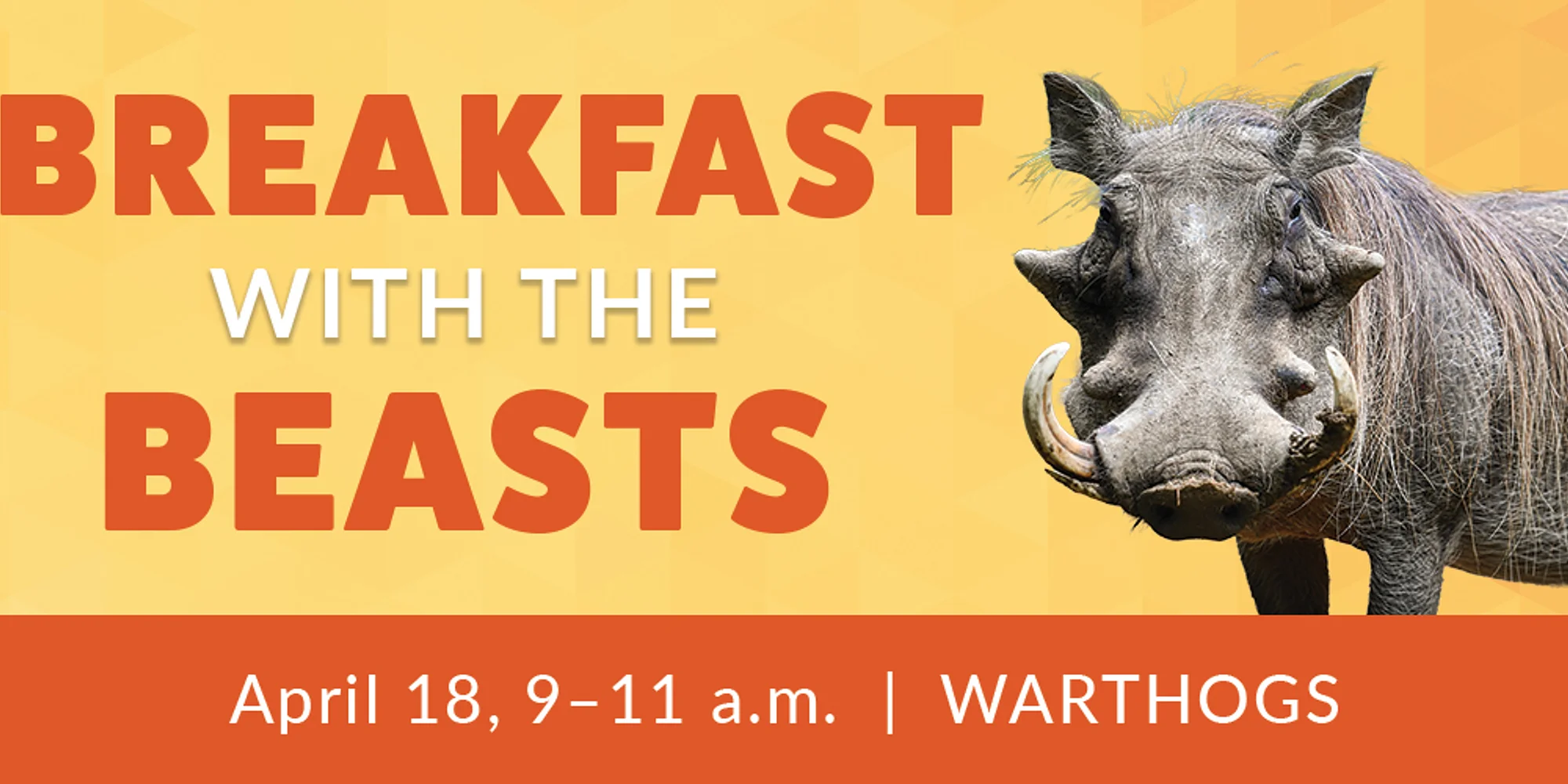 Join us for Breakfast with the Beasts, where you’ll have the chance to enjoy a morning meal while observing and learning about the fascinating world of warthogs. Wake up with some of your favorite animals in this program that brings a special look into how our animals start the day. Tickets include a hot breakfast featuring a waffle bar (Belgian waffles, assorted toppings, sausage links, fresh brewed coffee, orange juice and water), parking and admission for the day at the Zoo. Plus, the chance to ask all your questions to our knowledgeable staff! Breakfast will occur near the featured animals’ exhibit area and all programs will feature an exclusive keeper talk along with a chance to create enrichment for one of the Zoo’s animals! Breakfast with the Beasts is intended for families with children ages 4 – 18. Also good for scout and youth groups of the same age. Prices $40 per person Age 2 and Under: $0 Advance purchase required. Buy Now! Breakfast with the Beasts Schedule Breakfast with the Beasts: Beavers April 4, 2026 @ 9:00 am Join us for Breakfast with the Beasts, where you’ll have the chance to enjoy a morning meal while observing and learning about the fascinating world of beavers. Breakfast with the Beasts: Warthogs April 18, 2026 @ 9:00 am Join us for Breakfast with the Beasts, where you’ll have the chance to enjoy a morning meal while observing and learning about the fascinating world of warthogs. Breakfast with the Beasts: Zebra May 2, 2026 @ 9:00 am Join us for Breakfast with the Beasts, where you’ll have the chance to enjoy a morning meal while observing and learning about the fascinating world of Zebra. Breakfast with the Beasts: Aldabra Tortoise May 31, 2026 @ 9:00 am Join us for Breakfast with the Beasts, where you’ll have the chance to enjoy a morning meal while observing and learning about the fascinating world of the Aldabra Tortoise. Breakfast with the Beasts: Crocs and Gators June 13, 2026 @ 9:00 am Join us for Breakfast with the Beasts, where you’ll have the chance to enjoy a morning meal while observing and learning about the fascinating world of Crocs and Gators. Breakfast with the Beasts: Australia June 20, 2026 @ 9:00 am Join us for Breakfast with the Beasts, where you’ll have the chance to enjoy a morning meal while observing and learning about the fascinating world of Australia. Breakfast with the Beasts: Sumatran Tiger July 18, 2026 @ 9:00 am Join us for Breakfast with the Beasts, where you’ll have the chance to enjoy a morning meal while observing and learning about the fascinating world of the Sumatran Tiger. Breakfast with the Beasts: Giraffe August 8, 2026 @ 9:00 am Join us for Breakfast with the Beasts, where you’ll have the chance to enjoy a morning meal while observing and learning about the fascinating world of Giraffes. Breakfast with the Beasts: Orangutan August 15, 2026 @ 9:00 am Join us for Breakfast with the Beasts, where you’ll have the chance to enjoy a morning meal wh...