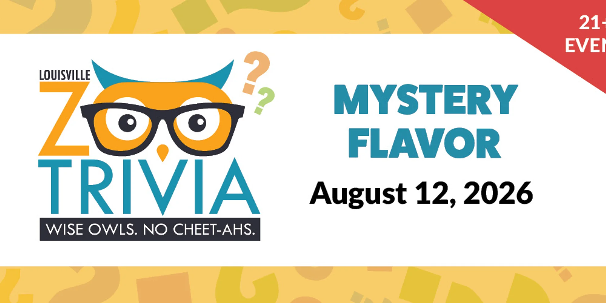 Advance purchase required. Doors open at 6:30 p.m. | Trivia begins at 7:00 p.m. Purchase Tickets! Join us after-hours for a wild, themed trivia game. These fun-filled evenings will feature music, prizes and of course, trivia! Food and drink specials will be available. Prizes will be awarded to the first, second and third place teams. Evening hosted by Louisville Trivia. Mystery Flavor You can guess, but we won’t tell you! Join us for a wild night of trivia with a super-secret theme. Don’t worry—we promise it’s a good one. Prices Individual ticket: $25 Team of 4: $80 Team of 8: $160 Purchase Tickets! Notes: Eight is the maximum number of members you can have on one team. This event is for guests ages 21 and older. No children will be admitted. Outside alcohol will not be permitted. There are no refunds, rainchecks or discounts for this special experience. Trivia Nights Schedule Trivia Night – Zooper Heroes March 18, 2026 @ 6:30 pm Join us for this green-themed trivia night and test your luck for a chance to win a pot of gold. (Actual prizes do not include real gold coins.) Trivia Night – April Fools April 15, 2026 @ 6:30 pm Expect the unexpected! See what zany tricks we have up our sleeves at this punny and wacky night of trivia fun. Trivia Night – Revenge of the Sixth May 6, 2026 @ 6:30 pm May the facts be with you as you take on this galactic challenge. You could play Star Wars trivia Solo, but we recommend building a team of jedi masters. Seats may fill up in less than 12 parsecs, so do (or do not) reserve your seat early. Trivia Night – Wild World of Disney June 17, 2026 @ 6:30 pm Put on your thinking cap (or favorite pair of Mickey ears) for this wild night of trivia. You’ll have to do more than wish upon a star to take the top prize. Trivia Night – Spicy Summer Reads July 15, 2026 @ 6:30 pm Summer is heating up! Sparks will fly at this wild night of trivia based on book boyfriends from fan-favorite novels across all genres of romance. Trivia Night – Mystery Flavor August 12, 2026 @ 6:30 pm You can guess, but we won’t tell you! Join us for a wild night of trivia with a super-secret theme. Don’t worry—we promise it’s a good one. Trivia Night – Wild World of Disney September 2, 2026 @ 6:30 pm Put on your thinking cap (or favorite pair of Mickey ears) for this wild night of trivia. You’ll have to do more than wish upon a star to take the top prize. Trivia Night – Cozy Caper November 18, 2026 @ 6:30 pm Only the greatest detectives will be able to solve the mystery. Answer trivia questions and put together clues to figure out ZOOdunnit. Trivia Night – Jungle Bells December 16, 2026 @ 6:30 pm Don your ugliest holiday sweater and test your knowledge for this wildly festive reindeer game. More 21+ Events Looking for more grown-up fun at your Zoo? Enjoy our lineup of adult-only events this year! Check out similar events at your Zoo like Happy Hours, Brew at the Zoo and Monarchs & Mimosas. Learn more…