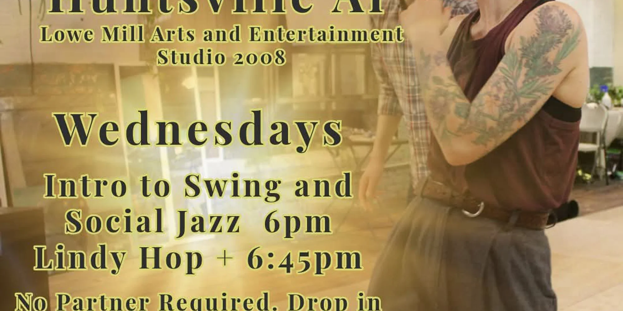 Swing and Jazz Dance roots and FUNdamentals on Wednesday nights at Historic Lowe Mill Arts and Entertainment Studio 2008. $15/$10 for high school and college students. Drop in/Walk ins welcome! Classes are Open Level/ Beginner Friendly. Cash and or venmo please. We teach Charleston, Breakaway, and Lindy Hop two week of each then 2 weeks of mixing them together. Every class is stand alone and can be you very first class, but taking them all will get you to the Lindy Hop + class. We are 2nd floor, near stairwells 3, 5, and 11. Studio 2008.