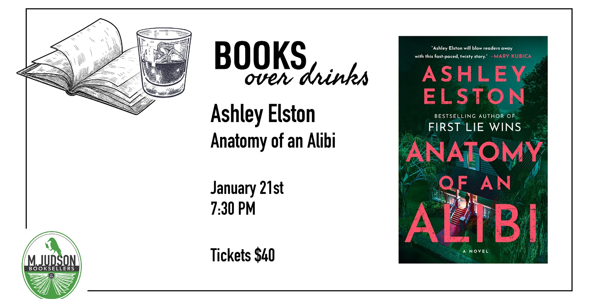 A tense, feverish thriller about two women’s lives that are forever intertwined when a murder threatens to expose them both. If you love Riley Sagar and Shari Lapena, you do not want to miss this Books Over Drinks with Ashley Elston and special guest Megan Miranda! REVIEWS: “Ashley Elston will blow readers away with this fast paced, twisty story about family bonds and the things people will do to avenge their loved ones. With characters that are true to life and a propulsive storyline, once you pick this book up, you won’t be able to put it down!” —Mary Kubica, New York Times bestselling author of Local Woman Missing “In Anatomy of an Alibi, Ashley Elston expertly unravels a web of secrets and lies in a small southern town. You won’t know who to trust, and you won’t be able to put this excellent thriller down until the final shocking page.” —Megan Miranda, New York Times bestselling author of All the Missing Girls “Anatomy of an Alibi is perfectly paced from the start, a taut and addictive puzzle about two women who need the same alibi after a husband turns up dead. You can feel the secrets simmering in this small southern town. This expertly-crafted thriller marks Ashley Elston as one of the best.” —Ashley Audrain, New York Times bestselling author of The Push “Anatomy of an Alibi is a twisty tale of two Louisiana women living in two very different worlds—one rich, one poor—who swap identities at exactly the wrong moment. Ashley Elston’s writing is completely addictive.” —Jenny Jackson, New York Times bestselling author of Pineapple Street ABOUT THE AUTHOR: Ashley Elston worked for many years as a wedding photographer before turning her hand to writing. First Lie Wins, her adult debut and a Reese’s Book Club pick, was a number one New York Times bestseller and has been translated into more than thirty languages. Anatomy of an Alibi is her second adult novel. Never been to Books Over Drinks? Your ticket includes entry to the event, a signature cocktail or mocktail, and a signed copy of the book.