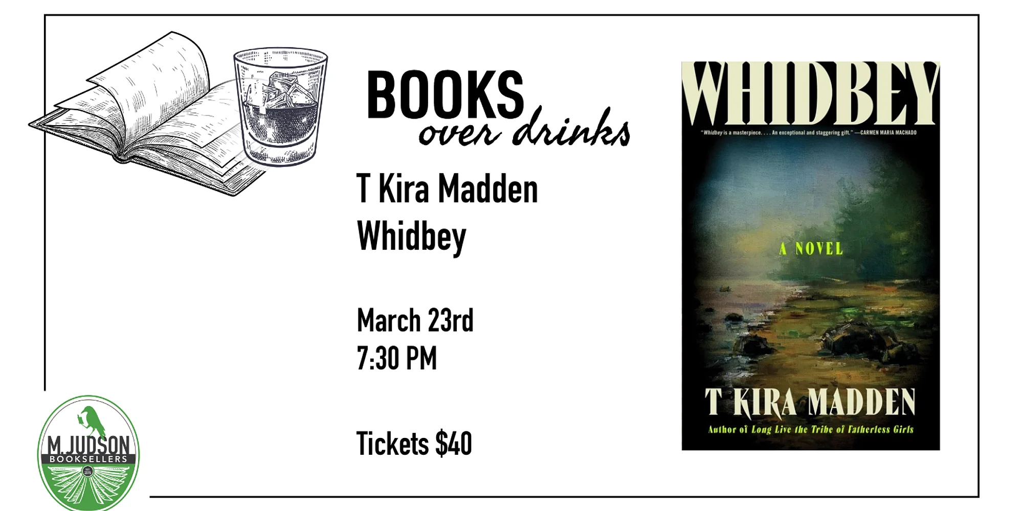 A portrait of three women connected through one man in the aftermath of his murder—a stunning literary achievement and the explosive and highly anticipated debut novel from a beloved, award-winning memoirist. If you love Emma Cline and Rebecca Makkai, you do not want to miss Books Over Drinks with T Kira Madden! REVIEWS: “To read T Kira Madden is to feel your insides endlessly shifting, between barbed and rage-simmering to amused and serene. This brilliant and ever-expanding novel evoked fervent head nods, internal screams, and stretches of pondering. I would follow T Kira anywhere.” – Chanel Miller, New York Times bestselling author of Know My Name: A Memoir “Epic in its scope, intimate in its evocation, Whidbey reads like a thriller, compels like a mystery and regarding the human condition, converses with the classics. It’s hard to believe a first-time novelist produced a work as soulful and insightful as Whidbey; then again, one comes away certain that no other writer than T Kira Madden could have composed so profound an accounting. This is the book everyone will be talking about.” – Adam Johnson, Pulitzer Prize and National Book Award winning author of The Orphan Master’s Son and Fortune Smiles “It is rare that in one writer you’ll find a virtuoso precision on the sentence level, wonderous compassion for character, an unflinching willingness to claw into the heart of human suffering and a propulsive, engaging structure. Reading Whidbey feels like witnessing a cosmic, unlikely happening, like the planets aligning. This book will break you open. Whidbey is Masterwork. In T Kira Māhealani Madden we are seeing a master at work.” – Nana Kwame Adjei-Brenyah, New York Times bestselling author of Chain-Gang All-Stars and Friday Black “It is not enough to say that Whidbey is a masterpiece or T Kira Madden is a genius—it is, she is. But how lucky we are to have such a radically empathetic novel about pain and justice; such a rigorous, lucid accounting of the strangulation of violence and its slow, meticulous unwinding. Whidbey is an exceptional and staggering gift.” – Carmen Maria Machado, New York Times bestselling author of In the Dream House and Her Body and Other Parties ABOUT THE AUTHOR: T Kira Māhealani Madden is a diasporic Kanaka ‘Ōiwi (Native Hawaiian) writer and author of the acclaimed memoir Long Live the Tribe of Fatherless Girls, which was named a New York Times Editors’ Choice, as well as a finalist for the National Book Critics Circle John Leonard Prize, and the Lambda Literary Award. She is the Founding Editor of No Tokens, a magazine of literature and art, and has received fellowships from the New York Foundation for the Arts, Hedgebrook, Tin House, MacDowell, and Yaddo. Winner of the 2021 Judith A. Markowitz Award, she is an assistant professor at Hamilton College in Creative Writing and Indigenous studies and served as the Distinguished Writer in Residence at University of Hawai’i at Mānoa. Never been to Books Over Drinks?...