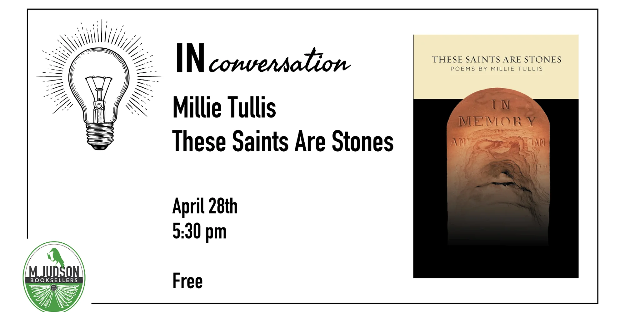 Join us for a free event with poet Millie Tullis for her new book, These Saints Are Stones. She will be in conversation with fellow poet Mamie Morgan. ABOUT THE BOOK: In Millie Tullis’s new poetry collection, These Saints are Stones, a faithless daughter is haunted by her third-great-grandmother, Martha, a woman who married her stepfather at sixteen and became a sister-wife to her own mother. Tullis cannot stop uncovering details about Martha, who left no written history behind, and her silence permeates this collection, which is rife with gaps and fragments, scraps of memory that blend with dreams. Sparse and spare, these poems echo the red desert landscape where the speaker’s ancestors lived and died, where she hunts for graves among the rocks and confronts a past she can never fully know. After all, like a sampling of lace, the cloth of women’s history is more hole than thread. ABOUT THE AUTHOR: Millie Tullis is a poet, editor, and researcher from northern Utah. She holds an MFA from George Mason University and an MA in American Studies & Folklore from Utah State University. Her poetry has been published in Dialogist, Sugar House Review, Cimarron Review, Dialogue, Ninth Letter, and elsewhere. Her digital micro-chapbook, Dream With Teeth, was published by Ghost City Press in 2023. Her research has won awards from the Utah Historical Society, the Folklore Society of Utah, and the American Folklore Society. She is the editor-in-chief of Exponent II. ABOUT THE CONVERSATION PARTNER: Mamie Morgan’s poems and essays have appeared in Oxford American, The Atlantic, Washington Square Review, Garden & Gun, Muzzle, Four Way Review, Sixth Finch, Carolina Quarterly, Smartish Pace, and elsewhere. Her first collection, Everyone I’ve Danced with Is Dead, was published by JackLeg in 2024. She lives in South Carolina with her husband and their dogs, Henrietta Modine and Wednesday Stewart.