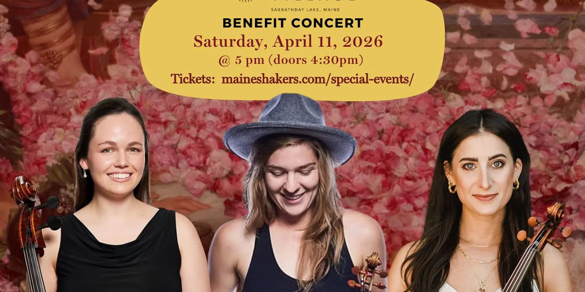 Join us for our Winter Concert Series in the Shaker Chapel to benefit The Shaker Herb House Cultural Arts Center renovation at Sabbathday Lake. Brighten your winter with beautiful acoustic music from Maine and beyond in the 1883 Shaker Dwelling House Chapel at Sabbathday Lake Shaker Village in New Gloucester. From traditional and contemporary folk traditions to the Shaker Village return of the Portland String Quartet, these four special concert events will feature a delightful variety of stringed instruments and musical styles, performed by some of our region’s most talented musicians. Concert #4- Portland String Quartet with special guest violinist Saturday, April 11, 2026 5pm-6:30pm (doors at 4:30) Carried in Song is a reflection on identity, personal voice, and cultural memory through the medium of a string quartet. The program opens with Iranian composer Aftab Darvishi’s Daughters of Sol, a piece that draws on a rich variety of musical traditions. With gentle transitions and delicate shifts in color, the piece evokes cycles of life and the quiet persistence of memory, moving fluidly between light and shadow, dissolution and return. Boston-based Vartan Aghababian’s Armenian Suite follows as an exploration of heritage and spirituality, drawing from Armenian musical traditions to create a sound world of reverence and reflection. The program closes with Dmitri Shostakovich’s String Quartet No. 2, written during a time of war and displacement. Woven with Jewish musical themes, it speaks with urgency and expressivity, capturing the resilience and traditions of voices passed down through generations. The PSQ invites audiences to join us on this journey as we explore music as a vessel for what we carry, and for what carries us. The PSQ is Callie Brennan on violin, Brianna Fischler on viola, and Kelly Knox on cello. They will be joined by a guest musician on violin, to be announced. Proceeds of this concert benefit the ongoing historic preservation of the Herb House Cultural Center. The Herb House project aims to create a communal space for people to share traditional arts within the only active Shaker Community in the world. General Admission Please consider making an additional donation in your shopping cart at checkout. Thank you!