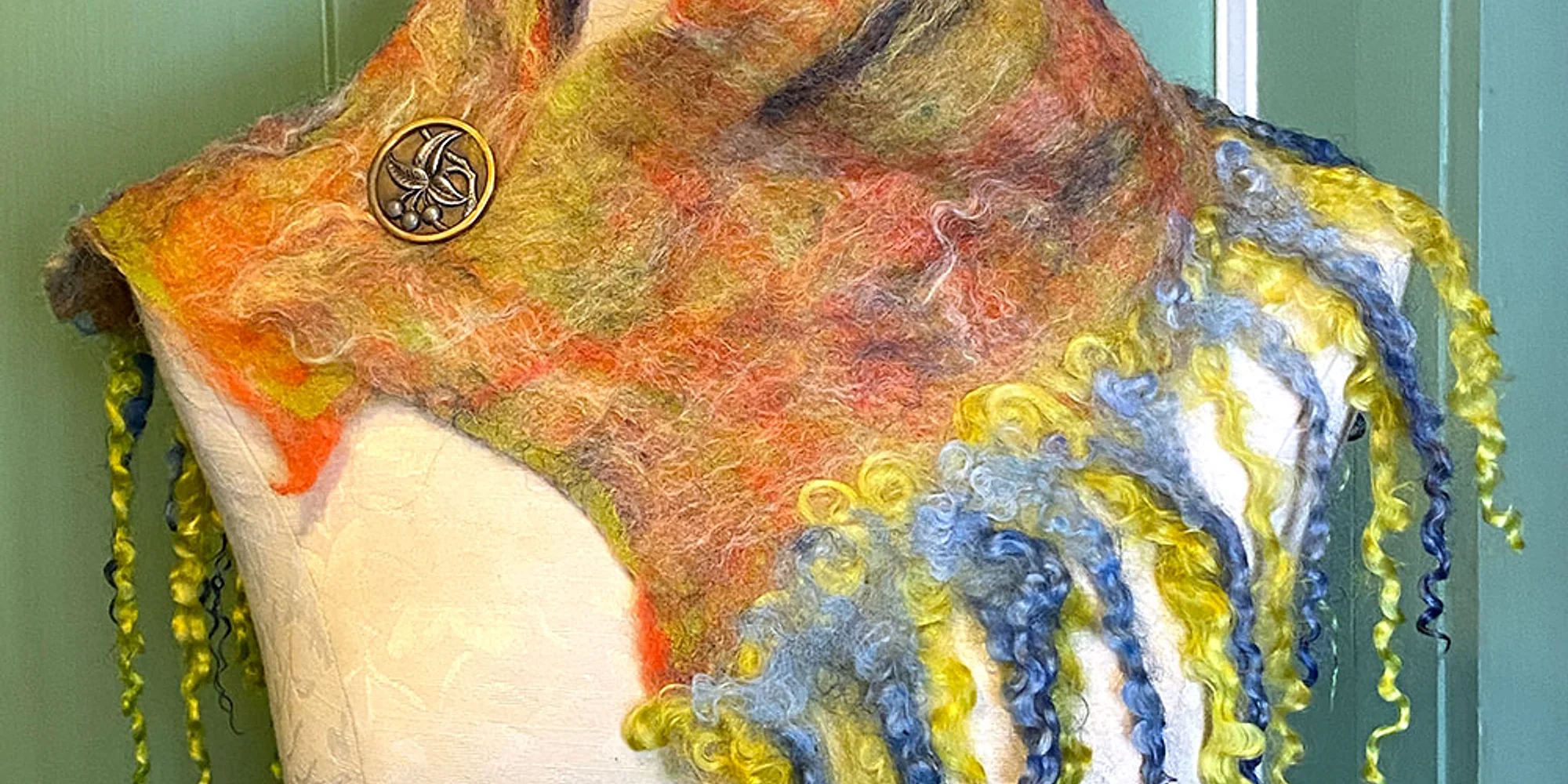 Wednesday, March 25, 2026 1pm-4pm Virtual via Zoom Nuno felting is a wet felting technique that incorporates a very thin, open mesh fabric with wool. Local fiber artist Betsey Leslie of Ewes To You in New Gloucester, ME will teach you how this Japanese word for cloth, “Nuno,” layers the wool into the fabric to create an extremely light-weight felt. We will be making a nuno felted scarf with wool curls as tassels. You will be using silk chiffon fabric, wool, and cashmere to create a beautiful wearable scarf of your own design. Kit includes bubble wrap, netting , felting stone , felting needles, wool, curls, and silk chiffon fabric. You will need a spray bottle, dish detergent, a couple of towels, and hot water (save $10 if you already have a felting stone) All materials will be provided and shipped to you in a kit. You’ll supply water in a spray bottle and dish soap. The live session will be recorded if you are unable to attend the live session. Felt a scarf right at home! After attending the workshop, you will be able to make nuno-felted products on your own and you’ll have video directions of this recorded session to refer to at your liesure. All levels are welcome, no experience necessary! Please use the cart NOTE FIELD to request color preferences: Natural tones, blues/greens, or purples/pinks. Also whether you like bold colors or muted tones. Did you know that current members of The Friends of the Shakers receive $5 off each workshop? Sign up or renew today for your discount!