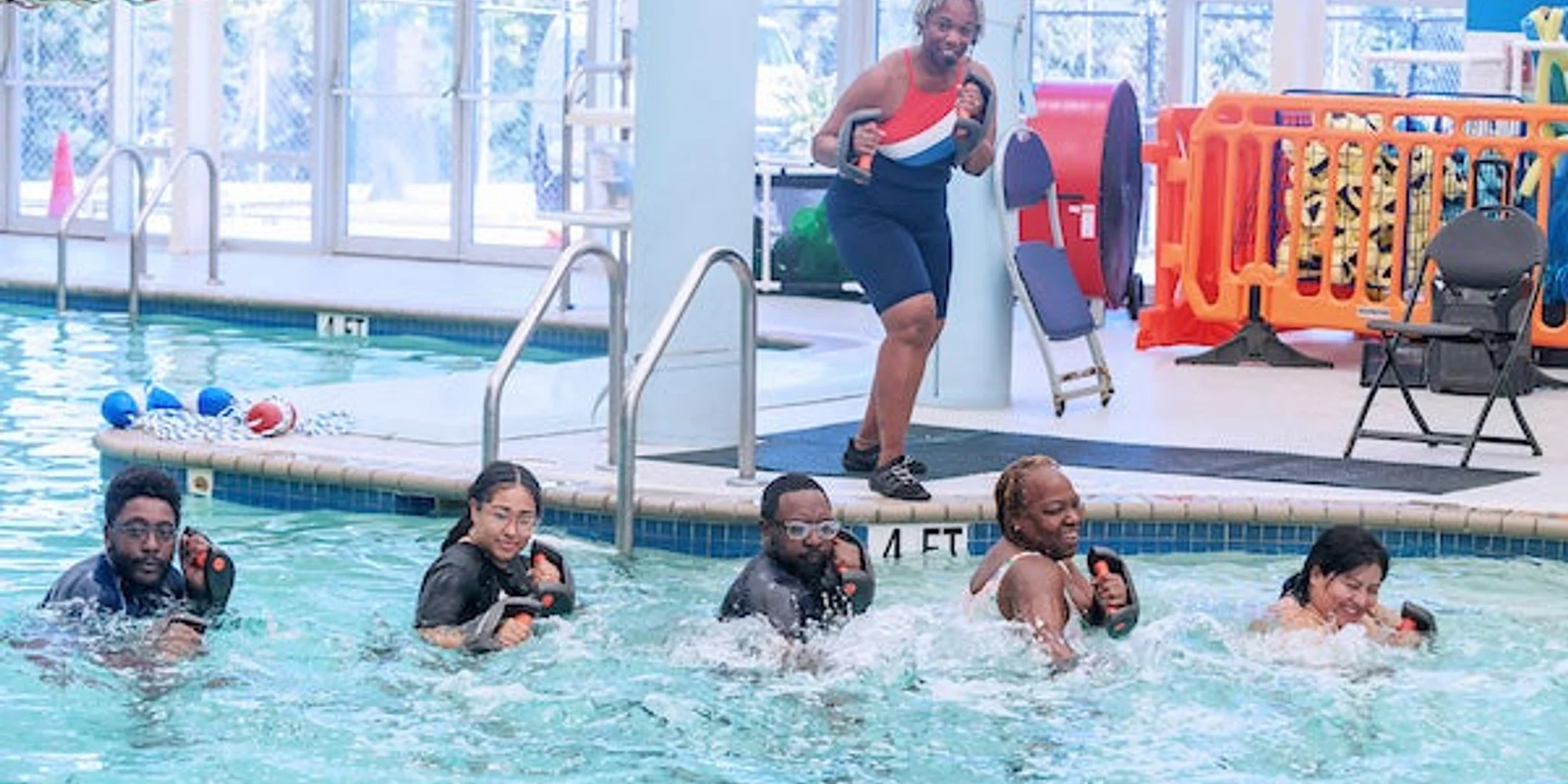 Aqua Combat is an energetic fitness class that blends water resistance with martial arts-inspired movements. This dynamic workout builds muscular strength, endurance, and coordination while incorporating high-energy aqua cardio and core-focused kickboxing combinations.