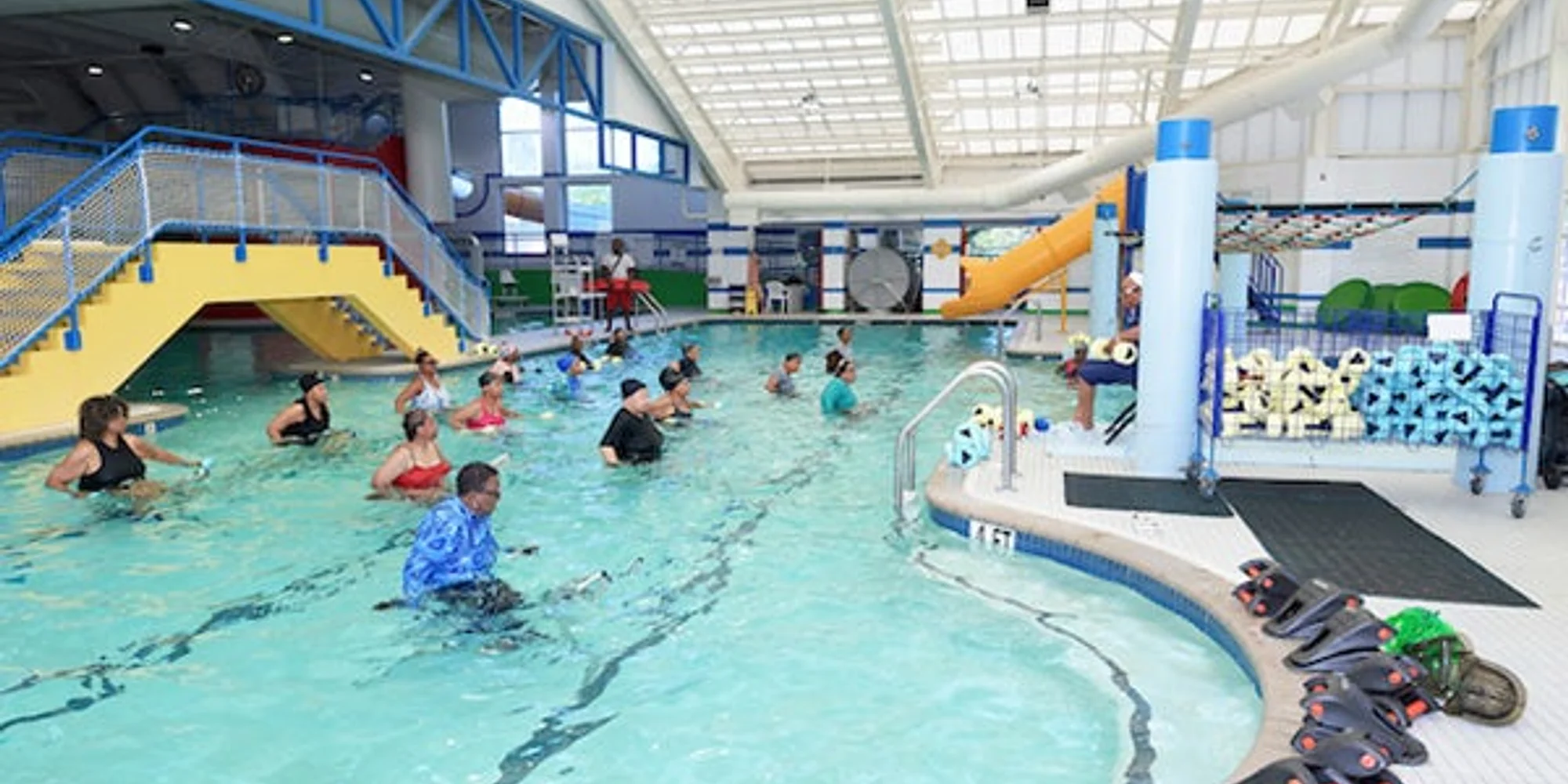 Dive into fitness with a splash! Try our free Beginner Level Aqua Spin course. Beat the temptation to be a couch potato with this challenging, aerobic and anaerobic workout utilizing stationary bikes in the water with tension settings that allow you to work at your own fitness level. This low impact, heart healthy exercise strengthens and tones your hamstrings, buttocks, and inner thighs. Join our non-judgmental culture of diverse spinners while having fun moving to great tunes.