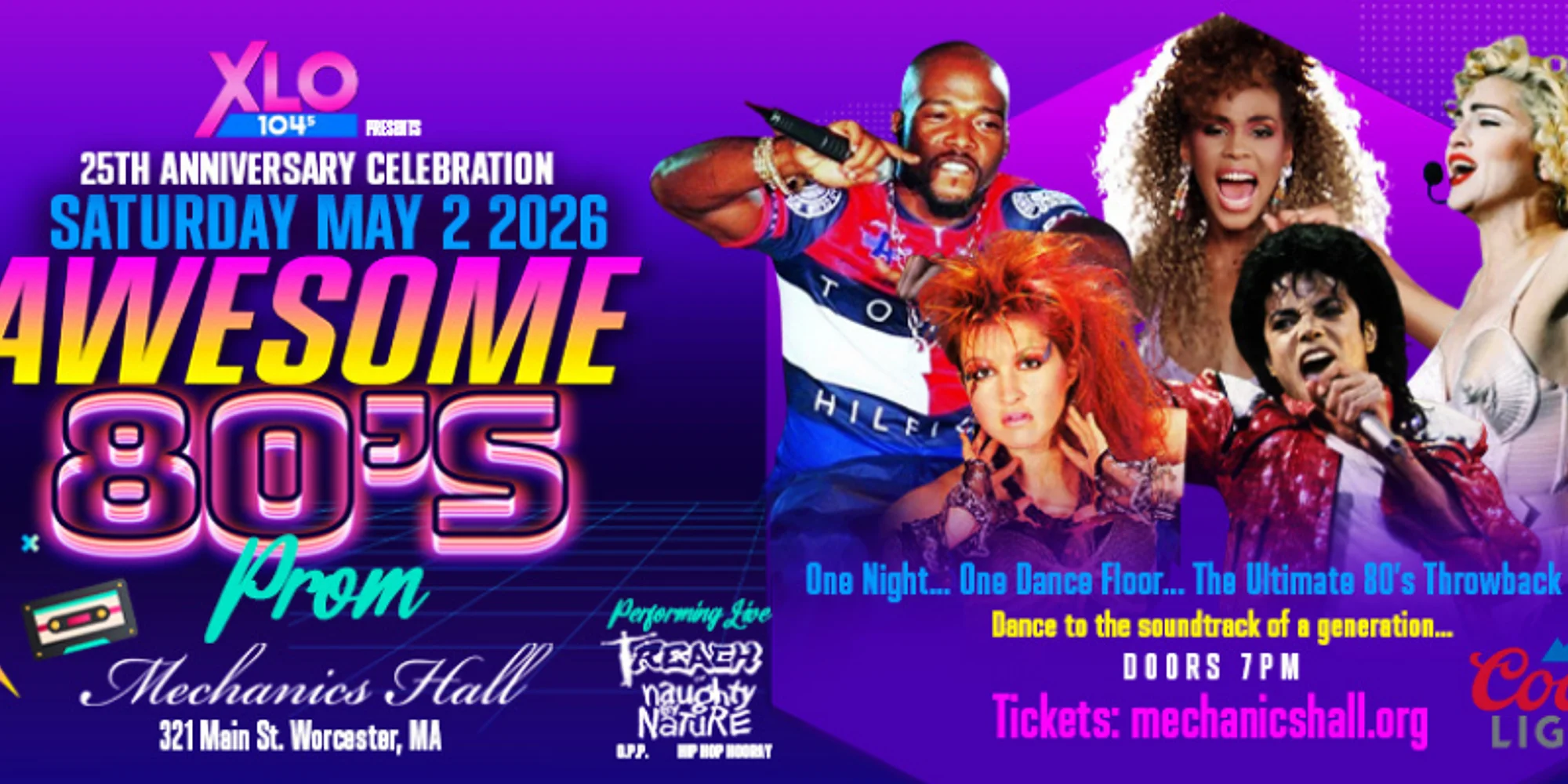 🎉 Get Ready for the Most Epic Throwback Party in Worcester! 🎉 The Awesome 80’s Prom at Mechanics Hall is the ultimate night of nostalgia, neon, and non-stop fun! Whether you lived through the 80s or just love the music, this is your chance to step back in time for a night filled with dancing, live music, and throwback vibes. 🌟 Special Guest Appearance by Treach of Naughty By Nature 🌟 🎟 Tickets All prices include fees. Fees apply to all ticket sales, online, phone and in person. General Admission $49.99 + $8.65 – $58.64 Access to both party spaces – live band in Washburn Hall & DJ dance party in the Great Hall Full access to event bars & themed cocktails Special guest appearance by Treach of Naughty By Nature VIP (Limited Availability!) $85 + $10.55 – $95.55 Everything in General Admission PLUS: Reserved VIP seating for when you need a break from the dance floor Exclusive access to the VIP Lounge & VIP-only cash bar Access to complimentary snacks & bites Express entry – skip the line and start the party faster! MEET & GREET(Limited Availability!) $150 + $13.90 – $163.90 Everything in VIP PLUS a Meet & Greet with Treach of Naughty by Nature! *Day Of Tickets: $58.75 🌟 Two Party Spaces, One Unforgettable Night! 🌟 🎸 Live Band in Washburn Hall – Want to rock out to live 80s hits? Head to Washburn Hall, where an incredible band will be bringing your favorite classics to life. Sing along, grab a drink, and soak in the live music magic! 🎧 DJ Dance Party in The Great Hall – If you’re ready to hit the dance floor, the Great Hall is where the energy is off the charts! Our DJ will be spinning all the biggest 80s anthems, from pop and rock to synth and new wave, keeping the party going all night long. 🌟 Special Guest Appearance by Treach of Naughty By Nature 🌟 🎟 VIP Experience – Upgrade your night with VIP tickets! Enjoy premium seating, delicious bites, and exclusive access to a VIP-only cash bar. 👗 Dress the Part (Or Not!) – Go all out with an 80s-inspired outfit—think neon, leg warmers, big hair, or your favorite 80s movie character! But hey, if costumes aren’t your thing, no worries—just come as you are and have a blast. 🍹 Full Bars & Tasty Drinks – Sip on signature cocktails and classic drinks to keep the good times rolling all night long! 🔞 21+ Only 📍 Where? Mechanics Hall, Worcester, MA 📅 When? May 2