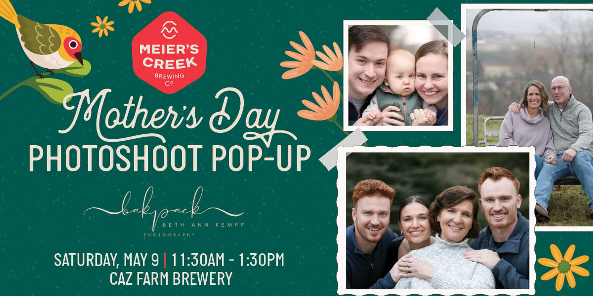 Celebrate Mom with a moment worth capturing at Meier’s Creek Brewing Company with BAK Pack Photography! Join us at the Caz Farm Brewery for a special Mother’s Day Photoshoot Pop-Up—a relaxed, meaningful experience designed to turn time together into lasting memories. Whether it’s the whole family, just the kids, or Mom front and center, this is your chance to pause, gather, and capture something truly special. Each mini session includes a 15-minute professional photoshoot and five beautifully edited digital images, delivered just in time for Mother’s Day. It’s the perfect gift—thoughtful, personal, and something she’ll cherish for years to come. Set against the scenic backdrop of the Caz Farm Brewery, this limited-time experience blends heartfelt moments with the charm of the brewery. Sessions are limited, so be sure to reserve your spot and give Mom a gift that lasts far beyond the day. Saturday, May 9 | 11:30AM – 1:30PM Meier’s Creek, Caz Farm Brewery Make it more than a celebration—make it a memory. Reserve your session here. Limited sessions available. Pre-registration required. Limited to one session per group. Location of photos dependent on weather. We will contact you week-of to confirm photoshoot details.
