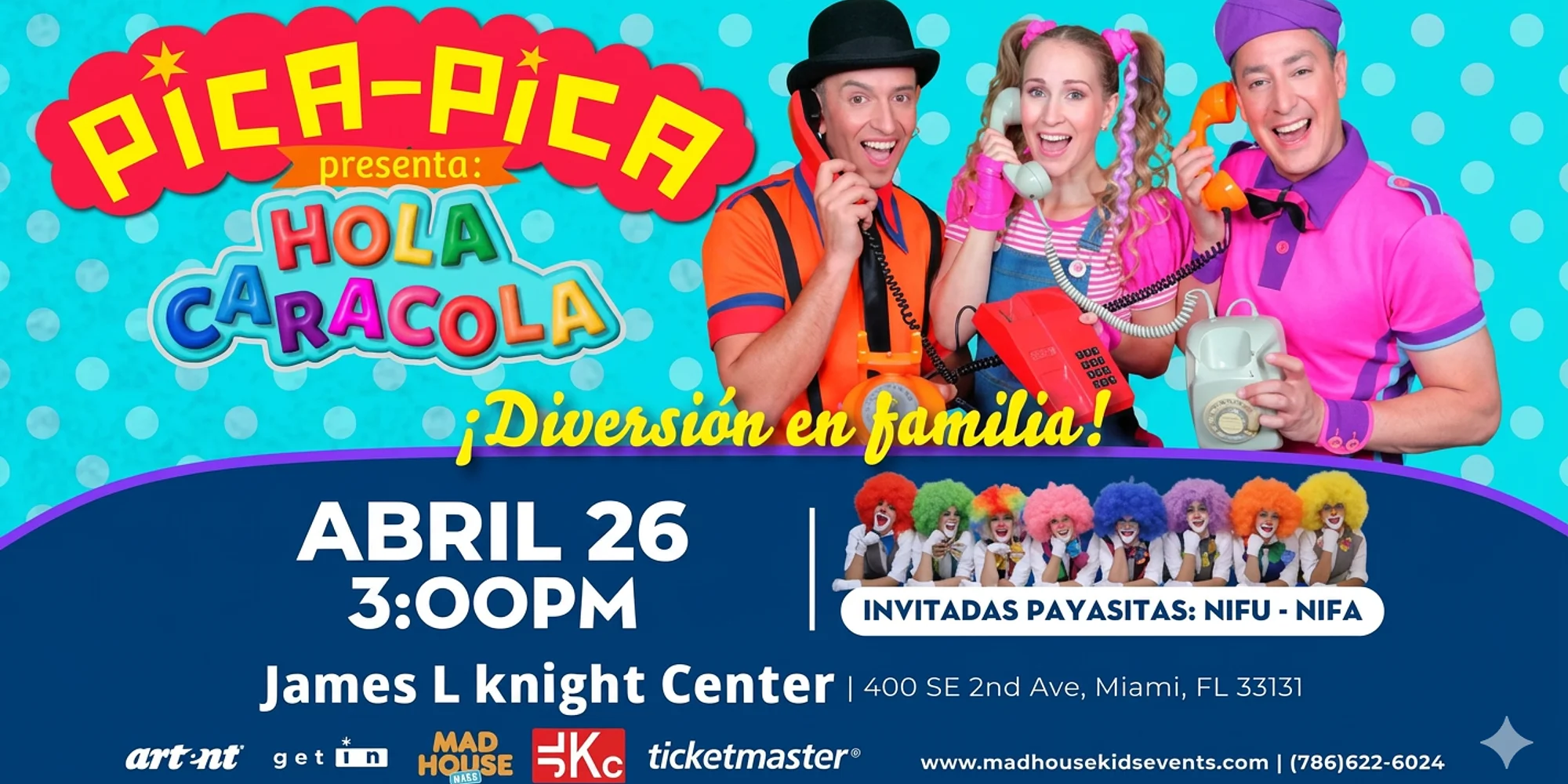 ¡Diversión, Música y Risas! El grupo infantil más popular del momento llega con su espectáculo lleno de juegos, coreografías y canciones que harán cantar y bailar a toda la familia. Pica Pica trae alegría, humor y entretenimiento educativo en un show dinámico y participativo. Boletos requirido para niños que celebraron su segundo cumpleaños. Tickets required for children who celebrated their second birthday.