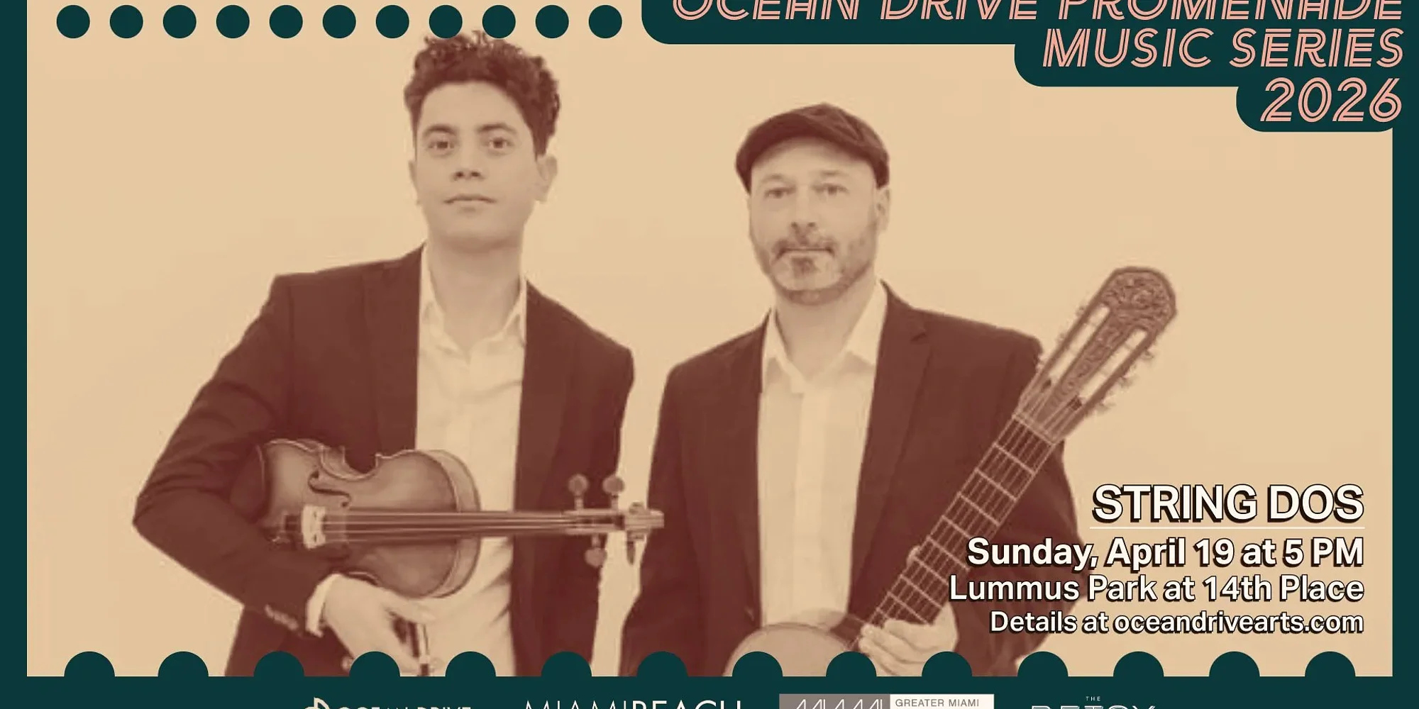 Head out to Ocean Drive on April 19 for String DOS performance, as part of the Ocean Drive Promenade Music Series. Luis and Michel are a duo of musicians who have honed their craft through classical training. Don’t miss the elegance of Luis’s violin and the finesse of Michel’s guitar. These events, presented by the Ocean Drive Association, take place every Sunday. They’re free and open to the public and start at 5 p.m. They typically take place in Lummus Park between 14th Street and 14th Place or at The Betsy if it rains. Bring your own seating.