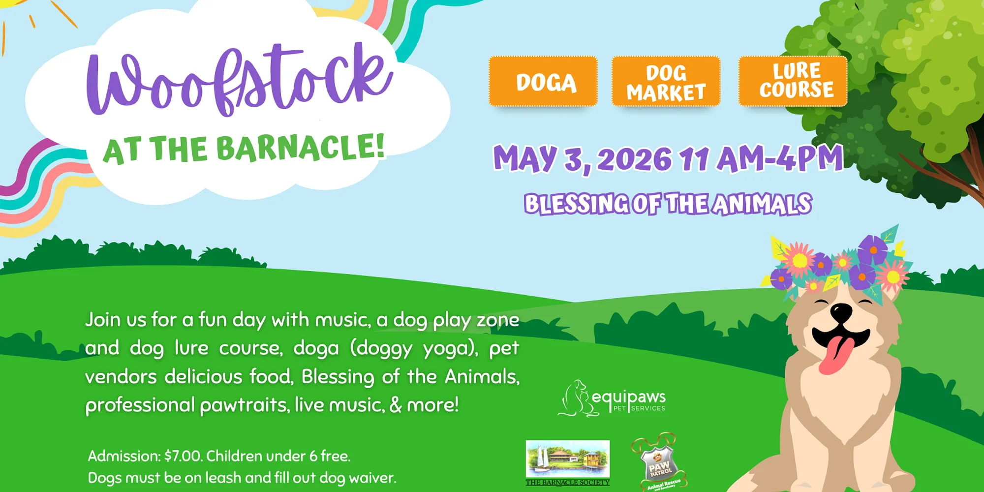 The Barnacle Society 3485 Main Highway Coconut Grove, FL 33133 KG would like to invite you to join us for Woofstock 2026 on Sunday, May 3rd, at the beautiful Barnacle Historic State Park! A groovy, dog-friendly, open-air pet market helps raise funds for Paw Patrol Animal Rescue and the Barnacle Historic State Park, while creating a fun day out for pets and their parents.