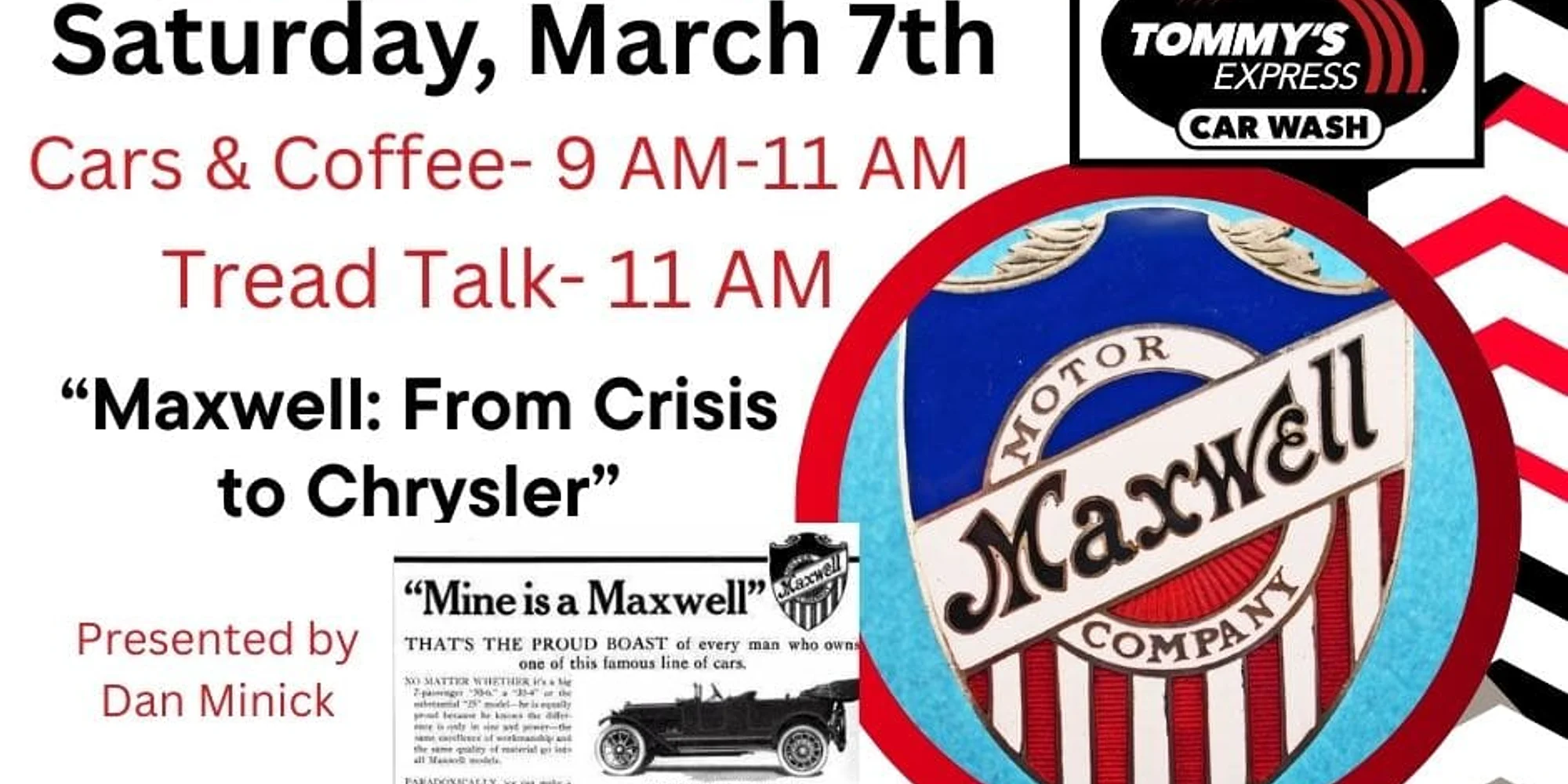 Maxwell: From Crisis to Chrysler Presented by Dan Minick Before Chrysler became a household name, there was Maxwell. In the early 1920s, the Maxwell Motor Company was struggling to survive—until Walter P. Chrysler stepped in with a bold vision for the future. Join us for this engaging Tread Talk as Dan Minick explores how Chrysler transformed Maxwell from a company in crisis into the foundation of a new automaker. Free admission to the museum until 11 AM.