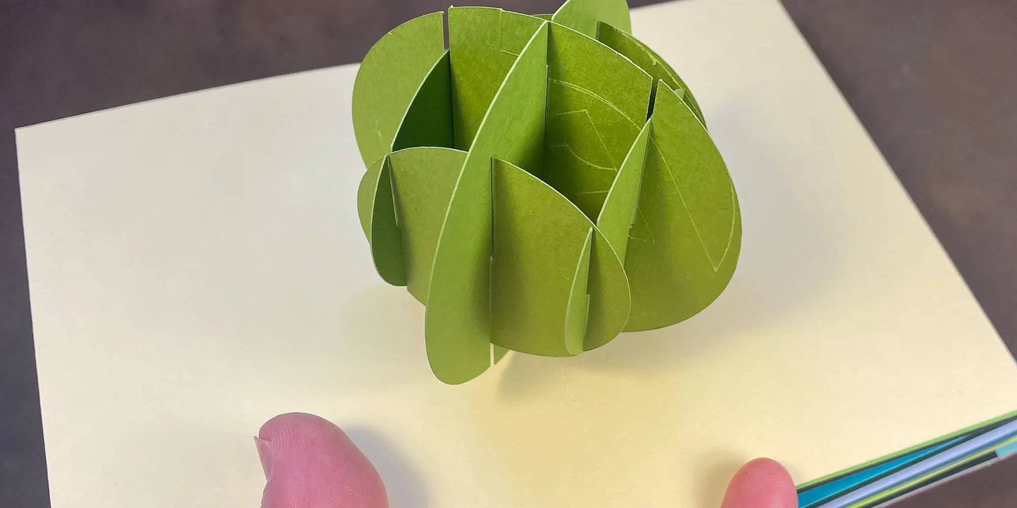 Thursday, April 16; 6–9pm CT Build pop-up volumes using a sculptural, flexible technique in this rare in-person workshop with Chicago-based artist Shawn Sheehy. Sliceforms are dimensional structures defined by rows of intersecting planes. In paper engineering, this approach can be beautifully detailed and sculptural; and with their myriad non-adhesive joins, the forms move effortlessly. The models demonstrate application of technique to both geometric solids and organic forms. Build a collection of pop-up models using a simple set of hand tools and a kit of pre-cut pieces. MCBA's Visiting Artist Program is generously supported by Cathy Ryan & Doris Engibous Level: Beginner. All skill levels are welcome. Certificate: 3 hours, Category C or D Pricing $108 | $54 Scholarship | $162 Pay-It-Forward $55 materials fee Scholarships are available for individuals facing adversity as it relates to identity, income/wealth, and lack of access to arts resources. The Pay-It-Forward rate (tuition, plus 50%) supports MCBA’s efforts to make scholarships available. We leave it to you to choose the rate that is meaningful to you based on your income, wealth, and privilege status. MCBA members receive a 10% discount on tuition. Please note: Registration closes 4/13 at midnight (CT). More Visiting Artist workshops Apr 11 Workshop, In-Person, Beginner, Binding and Box Making, Visiting Artist Tactile Books: Fiber Arts and Bookbinding Workshop, In-Person, Beginner, Binding and Box Making, Visiting Artist In this in-person workshop, explore the area where fibers and book arts overlap to create truly tactile books, engaging with a variety of materials to make one-of-a-kind works that satisfy both the visual and sensual experience of the reader. Workshop, In-Person, Beginner, Binding and Box Making, Visiting Artist Apr 16 Workshop, In-Person, Beginner, Related Arts, Binding and Box Making, Visiting Artist A Study in Sliceforms Workshop, In-Person, Beginner, Related Arts, Binding and Box Making, Visiting Artist Build pop-up volumes using a sculptural, flexible technique in this rare in-person workshop with Chicago-based artist Shawn Sheehy. Workshop, In-Person, Beginner, Related Arts, Binding and Box Making, Visiting Artist Apr 18 Workshop, In-Person, Beginner, Related Arts, Binding and Box Making, Visiting Artist The Pop-Up Vegetable Garden Workshop, In-Person, Beginner, Related Arts, Binding and Box Making, Visiting Artist Build a garden of delicious-looking, dimensional paper vegetables. Workshop, In-Person, Beginner, Related Arts, Binding and Box Making, Visiting Artist waitlist with Shawn Sheehy