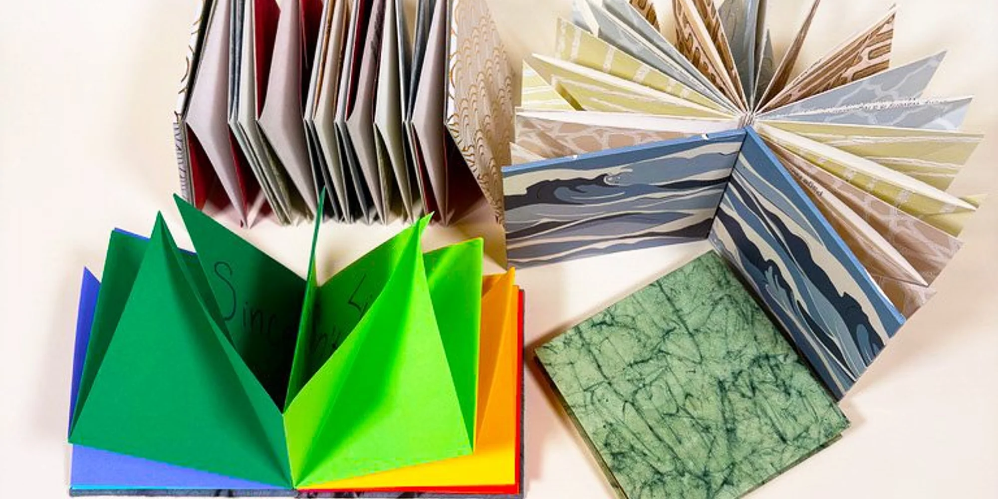 Tuesday, June 2; 4:30–6:30pm CT Construct a dynamic, adhesive binding with Turkish map-folds and petal-fold variations, in this virtual workshop. These folded structures expand outward when opened, creating dramatic and dimensional spreads that feel architectural and kinetic. Learn how to measure and fold precise Turkish and petal-fold units, then assemble them into a cohesive text block. Explore the balance between structure and play—how controlled folding techniques can produce surprising, “exploding” visual effects when the book is opened. Participants will leave the workshop with up to two books and the skills to adapt these folded forms into artist’s books, interactive journals, or sculptural paper works. Level: Beginner. All levels are welcome. Basic paper-folding experience is helpful, but not required. Certificate: 2 hours, Category B or D Pricing $45 | $23 Scholarship | $68 Pay-It-Forward Scholarships are available for individuals facing adversity as it relates to identity, income/wealth, and lack of access to arts resources. The Pay-It-Forward rate (tuition, plus 50%) supports MCBA’s efforts to make scholarships available. We leave it to you to choose the rate that is meaningful to you based on your income, wealth, and privilege status. MCBA members receive a 10% discount on tuition. What you'll need to participate Tech requirements: For this participatory virtual workshop, we recommend joining on a laptop or desktop computer with a camera, microphone, and strong internet connection. You will receive step-by-step instructions for downloading Zoom (it’s free!) and accessing the workshop online approximately 2 days before the workshop’s start date. Materials: You are responsible for sourcing your own materials from the materials list. You are welcome to reach out to teaching artists with questions about materials in advance of the workshop (contact information is listed on the materials list). Please note: Registration closes 5/29 at midnight (CT). More Binding and Box Making Workshops Apr 8 Workshop, In-Person, Beginner, Binding and Box Making Handmade Book: Materials & Techniques: Morning Workshop, In-Person, Beginner, Binding and Box Making Learn to sew a two-color silk headband, make custom book cloth from any fabric, and color a book edge with gouache. Workshop, In-Person, Beginner, Binding and Box Making Apr 8 Workshop, Virtual, Intermediate, Binding and Box Making Headbands: History, Use & Techniques Workshop, Virtual, Intermediate, Binding and Box Making In this virtual workshop, learn how to make headbands for a variety of styles of bindings such as case binding, Coptic, slotted tapes, etc. Workshop, Virtual, Intermediate, Binding and Box Making Apr 8 Workshop, Virtual, Intermediate, Binding and Box Making Textile Bookmaking Workshop, Virtual, Intermediate, Binding and Box Making Join us for a sensory-rich virtual workshop and create a unique hand-sewn textile book. Workshop, Virt...