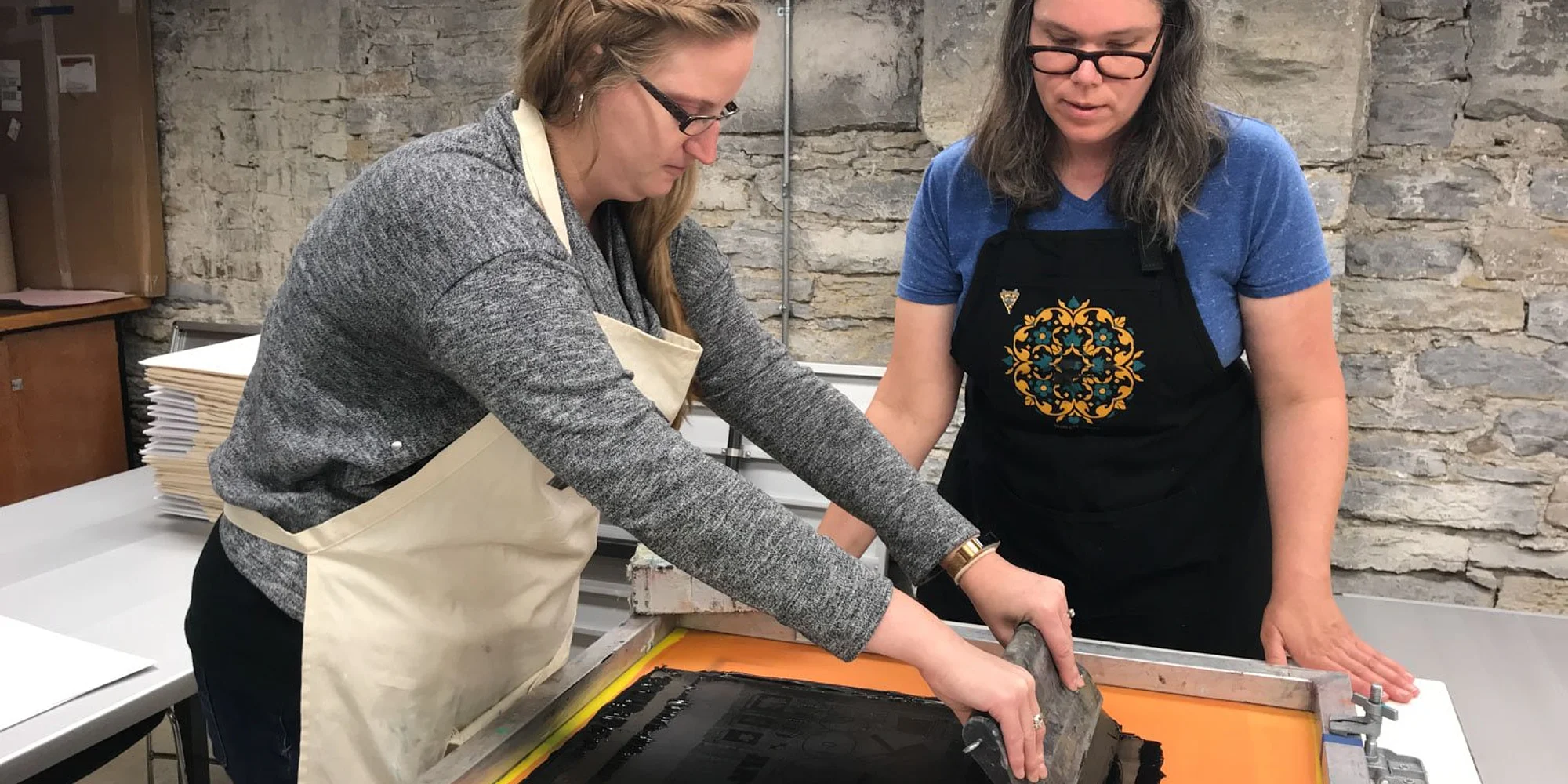 Thursdays: June 4, 11, 18, 25; 6–9pm CT Get familiar with MCBA’s screen printing studio and practice the photo emulsion process, from positive creation and screen coating to exposure and reclaiming. Each participant will complete an edition of multi-layered screen prints in this in-person workshop and come away with the confidence to work independently at MCBA's Screen Print Labs. Create your design positives using hand-drawn artwork and/or cut paper stencils. Bring your sketches and ideas to the workshop. Final designs should fit on a letter-sized sheet of paper (maximum width 8.5 inches) and may include up to two colors. Level: Beginner. All skill levels are welcome. Certificate: 12 hours, Category A, B, or D; fulfills Core printing requirement Pricing $294 | $147 Scholarship | $441 Pay-It-Forward $50 materials fee Scholarships are available for individuals facing adversity as it relates to identity, income/wealth, and lack of access to arts resources. The Pay-It-Forward rate (tuition, plus 50%) supports MCBA’s efforts to make scholarships available. We leave it to you to choose the rate that is meaningful to you based on your income, wealth, and privilege status. MCBA members receive a 10% discount on tuition. Please note: Registration closes 6/1 at midnight (CT). More Printing Workshops Apr 11 Workshop, In-Person, Printing, Beginner Screen Print Cards: April Workshop, In-Person, Printing, Beginner Get familiar with MCBA’s screen printing studio and print your unique design on a set of cards! Workshop, In-Person, Printing, Beginner Apr 16 Workshop, In-Person, Intermediate, Printing Multicolor Woodcut Printmaking Workshop, In-Person, Intermediate, Printing Sharpen your technique and gain a deeper understanding of the reductive printmaking process. Workshop, In-Person, Intermediate, Printing Apr 18 Workshop, In-Person, Beginner, Printing Letterpress 1: Printing Basics (April) Workshop, In-Person, Beginner, Printing This in-person letterpress workshop offers an introduction to MCBA’s print studio—including key equipment, tools, and terminology—in addition to an opportunity to experience the satisfaction of printing a message through the hands-on process of letterpress printing. Workshop, In-Person, Beginner, Printing Register with Ben Etten & Michelle Lee Lagerroos
