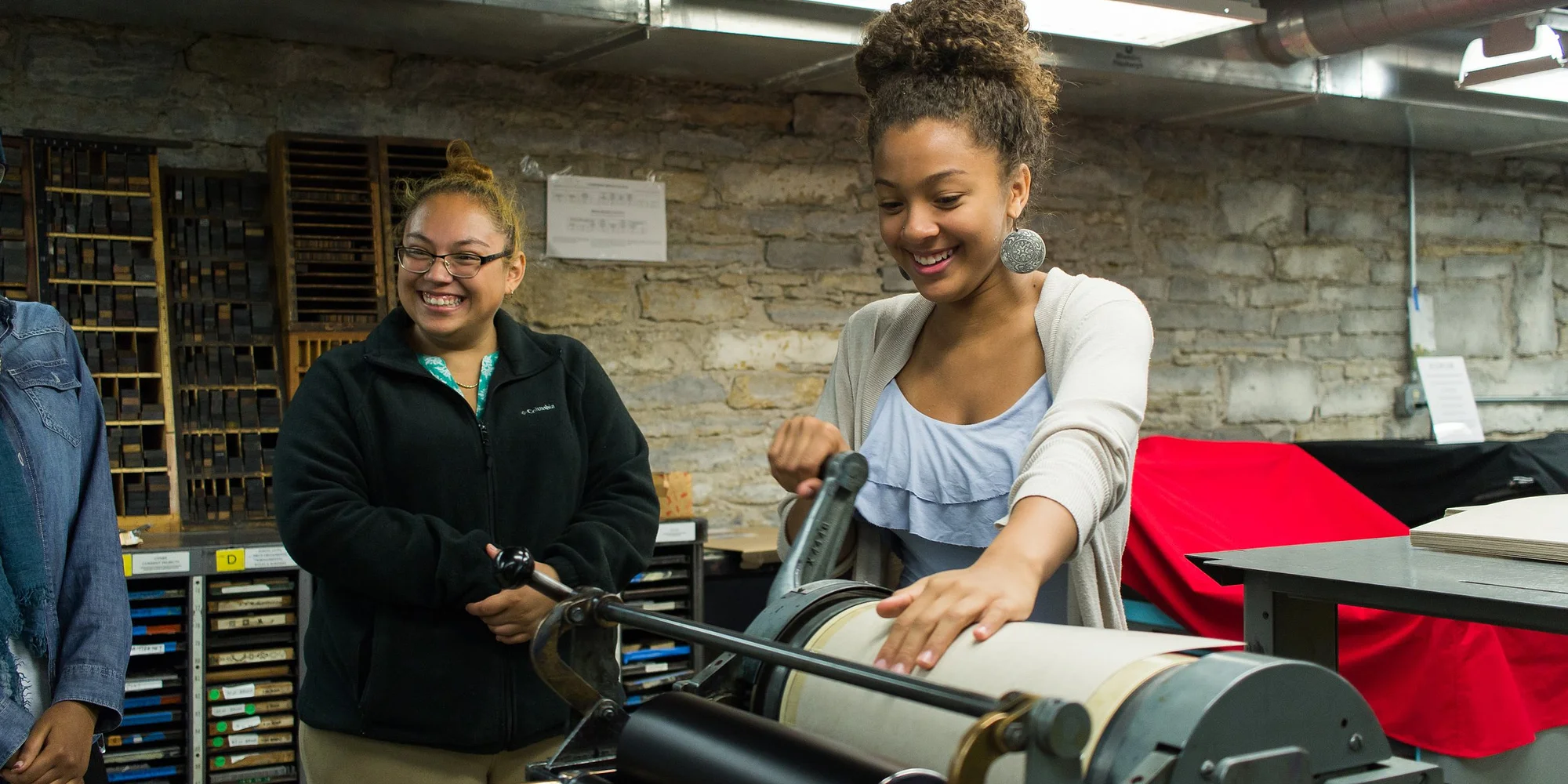 Saturday, April 18; 10am–4pm CT This in-person letterpress workshop offers an introduction to MCBA’s print studio—including key equipment, tools, and terminology—in addition to an opportunity to experience the satisfaction of printing a message through the hands-on process of letterpress printing. Get to know MCBA’s wood type collection and learn beginning typesetting with wood type. Learn the basics of working with a flatbed cylinder press, including operation, safety, and care while building skills using the equipment with support from a teaching artist. In pairs, choose a text (three to five words) and print your own small edition of posters on a Vandercook press. This workshop introduces participants to the technical skills required for letterpress printing, but participation in Letterpress 2: Setting Type and Letterpress 3: Two-Color Prints is needed in order to attend Letterpress Labs to print independently in MCBA’s studios. Level: Beginner. All skill levels are welcome. Certificate: 6 hours, Category A; fulfills Core printing requirement Pricing $147 | $74 Scholarship | $221 Pay-It-Forward $15 materials fee Scholarships are available for individuals facing adversity as it relates to identity, income/wealth, and lack of access to arts resources. The Pay-It-Forward rate (tuition, plus 50%) supports MCBA’s efforts to make scholarships available. We leave it to you to choose the rate that is meaningful to you based on your income, wealth, and privilege status. MCBA members receive a 10% discount on tuition. Please note: Registration closes 4/13 at midnight (CT). More Printing Workshops Apr 11 Workshop, In-Person, Printing, Beginner Screen Print Cards: April Workshop, In-Person, Printing, Beginner Get familiar with MCBA’s screen printing studio and print your unique design on a set of cards! Workshop, In-Person, Printing, Beginner Apr 16 Workshop, In-Person, Intermediate, Printing Multicolor Woodcut Printmaking Workshop, In-Person, Intermediate, Printing Sharpen your technique and gain a deeper understanding of the reductive printmaking process. Workshop, In-Person, Intermediate, Printing Apr 18 Workshop, In-Person, Beginner, Printing Letterpress 1: Printing Basics (April) Workshop, In-Person, Beginner, Printing This in-person letterpress workshop offers an introduction to MCBA’s print studio—including key equipment, tools, and terminology—in addition to an opportunity to experience the satisfaction of printing a message through the hands-on process of letterpress printing. Workshop, In-Person, Beginner, Printing Waitlist with Stacie Kammerling
